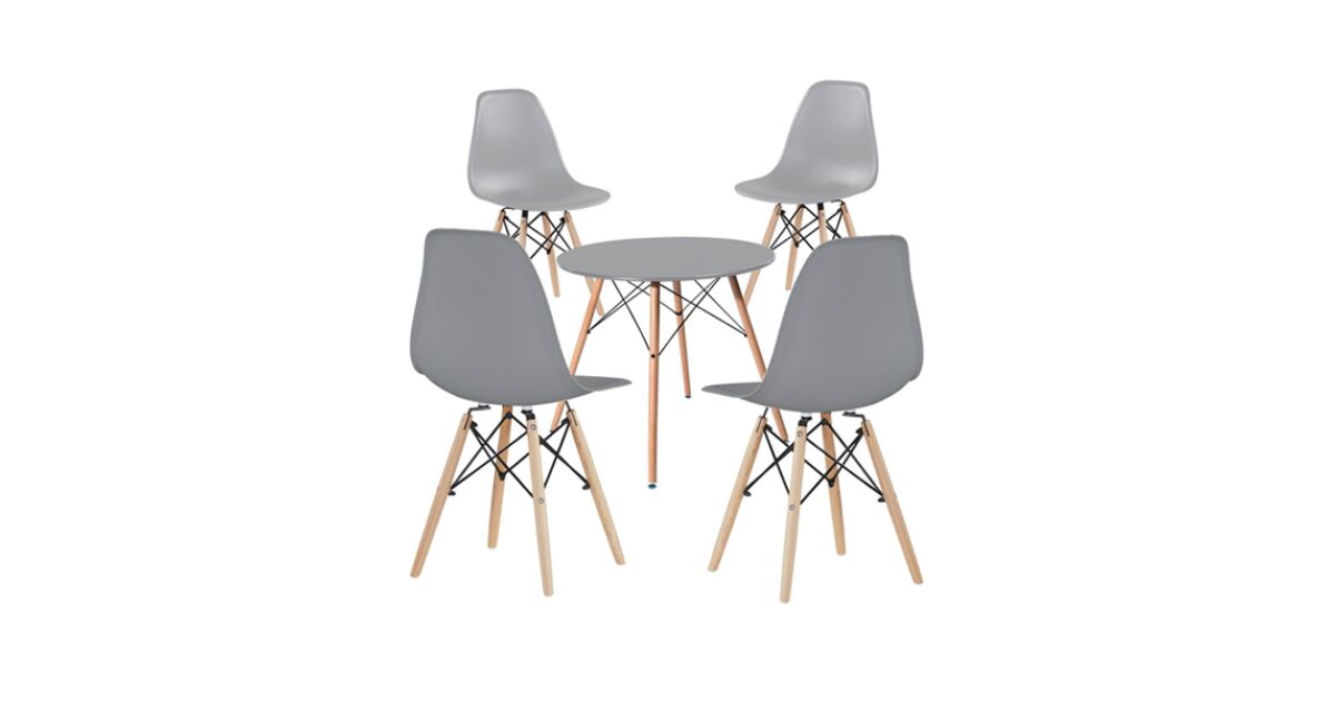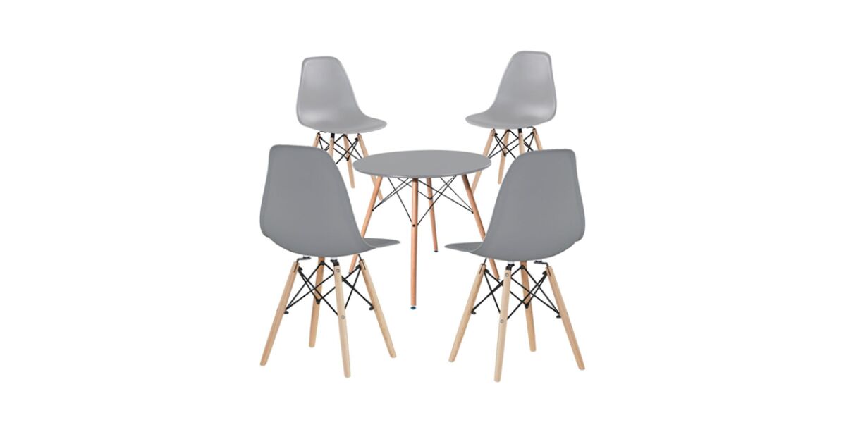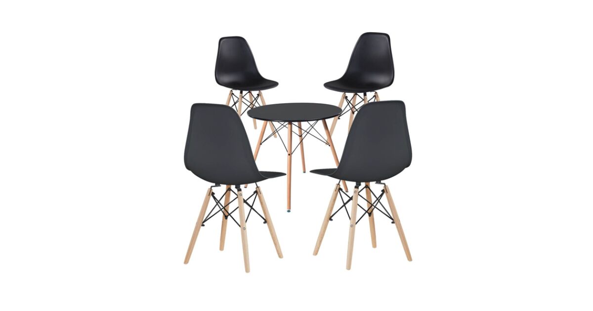 Oživte svoj domov alebo firmu touto modernou a elegantnou jedálenskou súpravou! Súprava obsahuje stôl a štyri stoličky, čo je ideálna voľba na stolovanie a stretnutia.