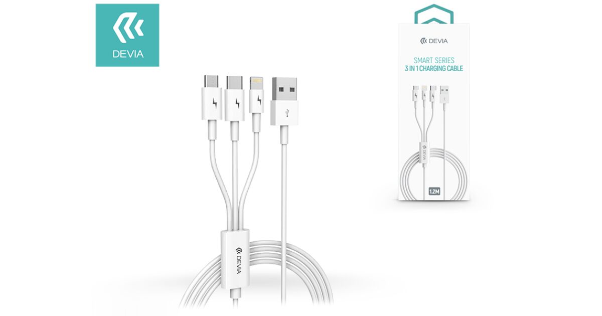 Devia USB nabíjací kábel s káblom 1,2 m - Devia Smart Series 3v1 pre Lightning/Android/Type-C - 2A - biely