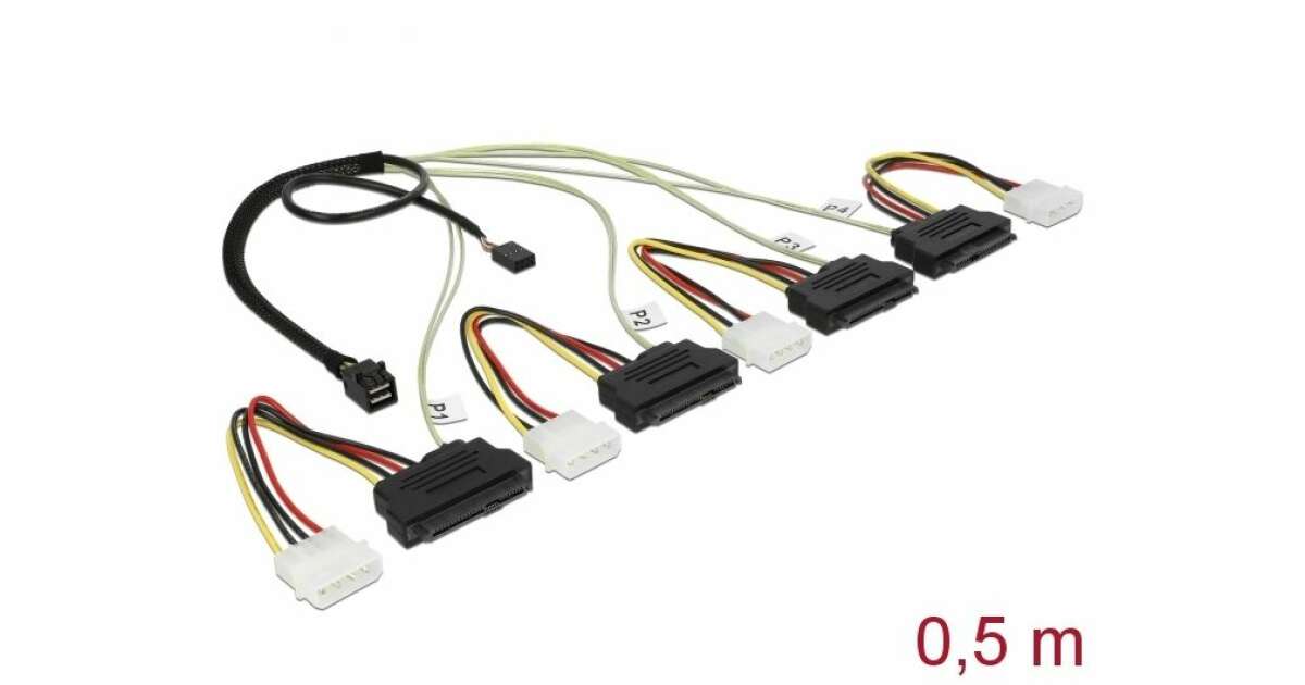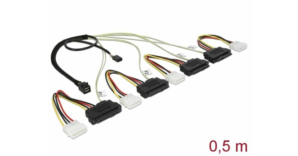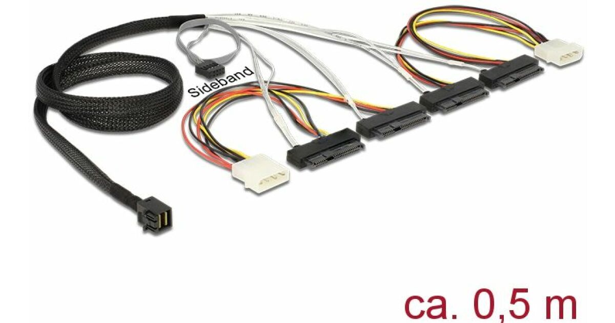 Delock Mini SAS HD - 4x SAS HDD kábel (0,5m): Ľahké pripojenie 4 pevných diskov