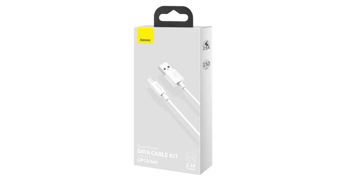 Sada dátových káblov Baseus Simple Wisdom, USB na micro-USB, 2,1 A, 1,5 m, 2 kusy, biela popis