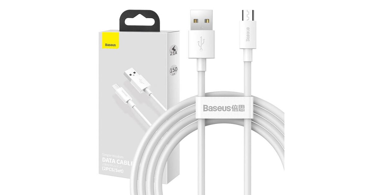Sada dátových káblov Baseus Simple Wisdom, USB na micro-USB, 2,1 A, 1,5 m, 2 kusy, biela