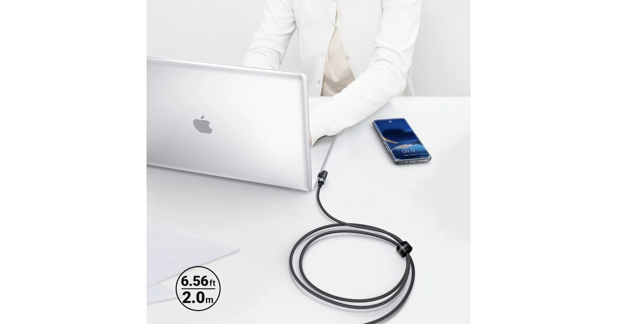 Tento 2-metrový opletený kábel USB-C - USB-C je ideálnou voľbou pre každého, kto hľadá rýchle a bezpečné nabíjanie. Dokáže nabíjať vaše zariadenia výkonom až 100 W, čím šetrí váš čas.