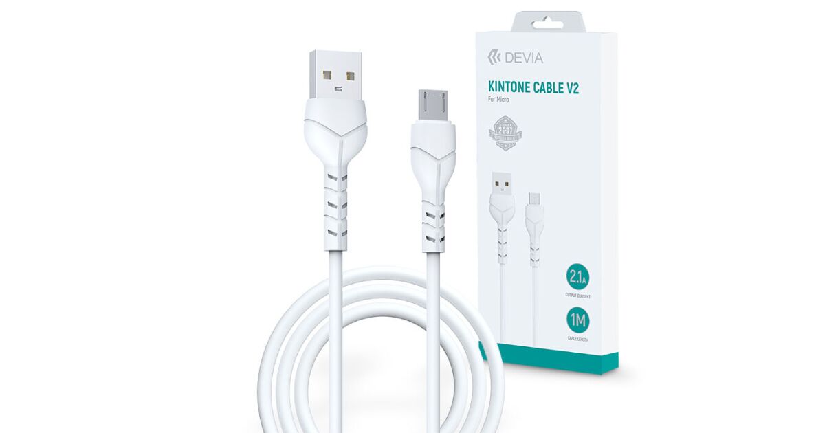 Nabíjací kábel Devia Kintone V2 Micro USB - 1m, biely