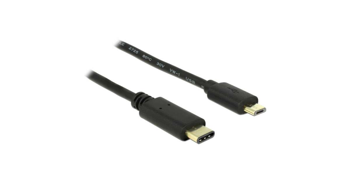 DeLOCK 2 m, USB2.0-C/USB2.0 Micro-B USB kábel Micro-USB B USB C Black popis