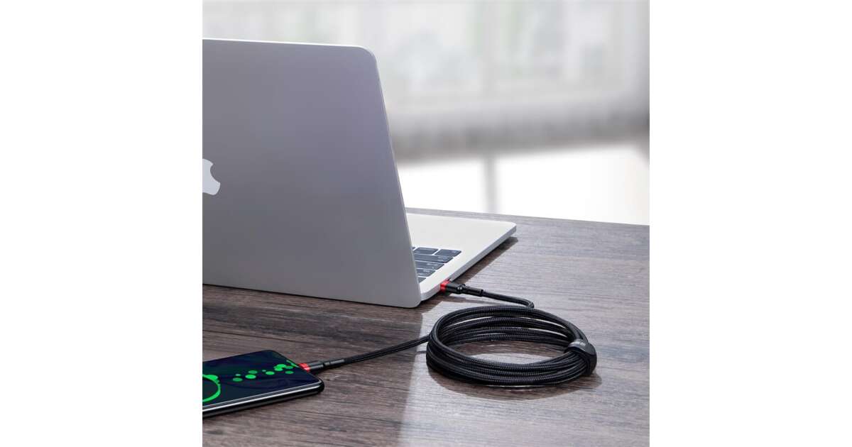Tento 2-metrový Baseus Cafule USB-C kábel podporuje 100W Power Delivery (PD) 2.0 a Quick Charge (QC) 3.0 technológie, takže si svoj notebook, telefón a ďalšie zariadenia s Type-C konektorom nabiješ bleskovo rýchlo. Výborná kvalita TPE, hliníka a kevlarového opletu robí kábel odolným a trvácnym, takže si dlho užiješ spoľahlivý výkon.