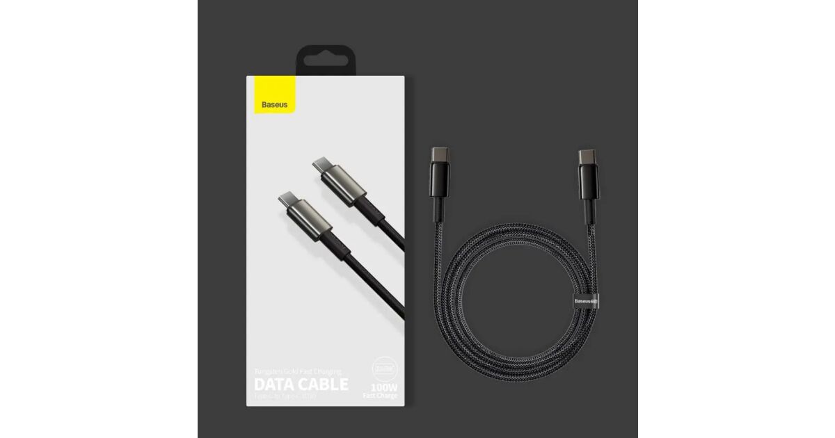 Baseus rýchlonabíjací dátový kábel Tungsten Gold 100W 1m USB-C na USB-C čierny popis