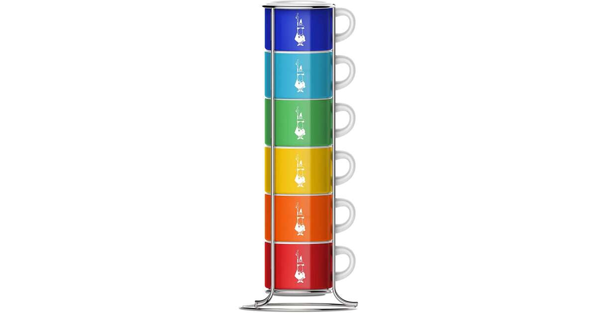 Súprava šálok na espresso Bialetti: 6 farebných šálok s kovovým stojanom ☕🌈