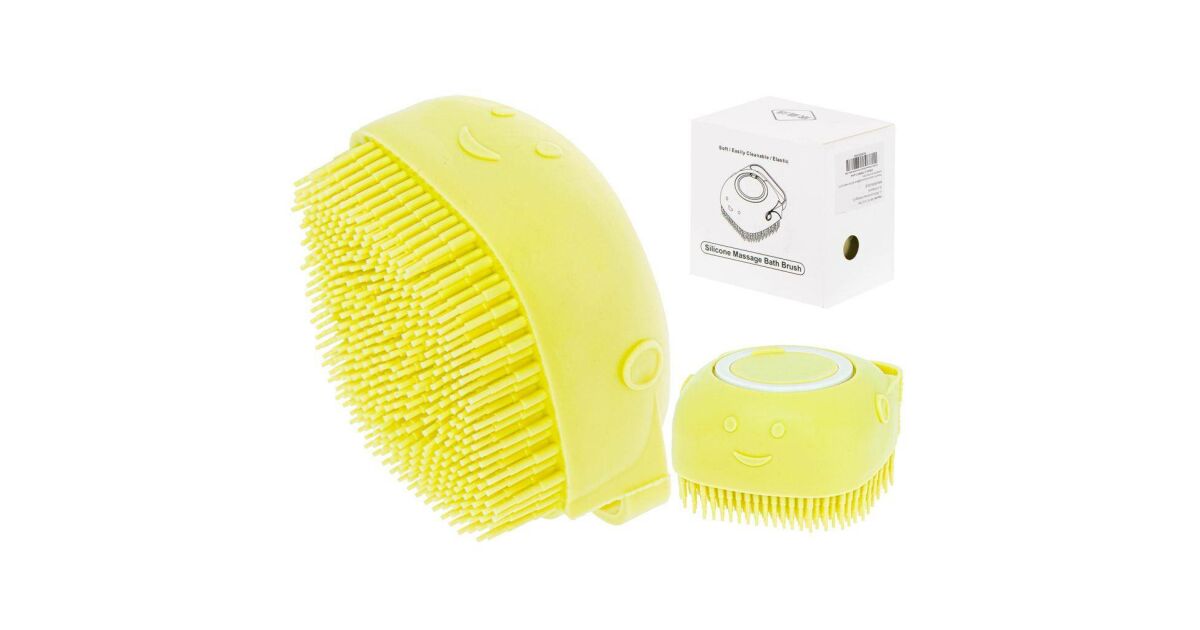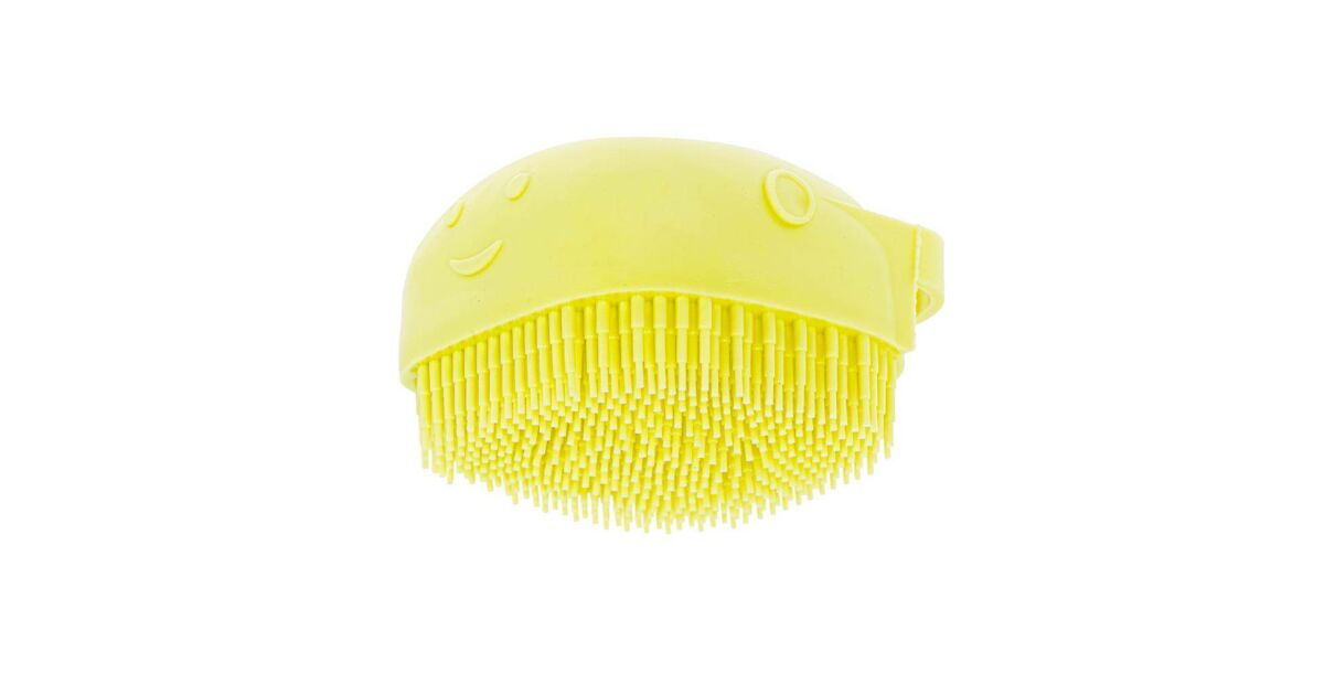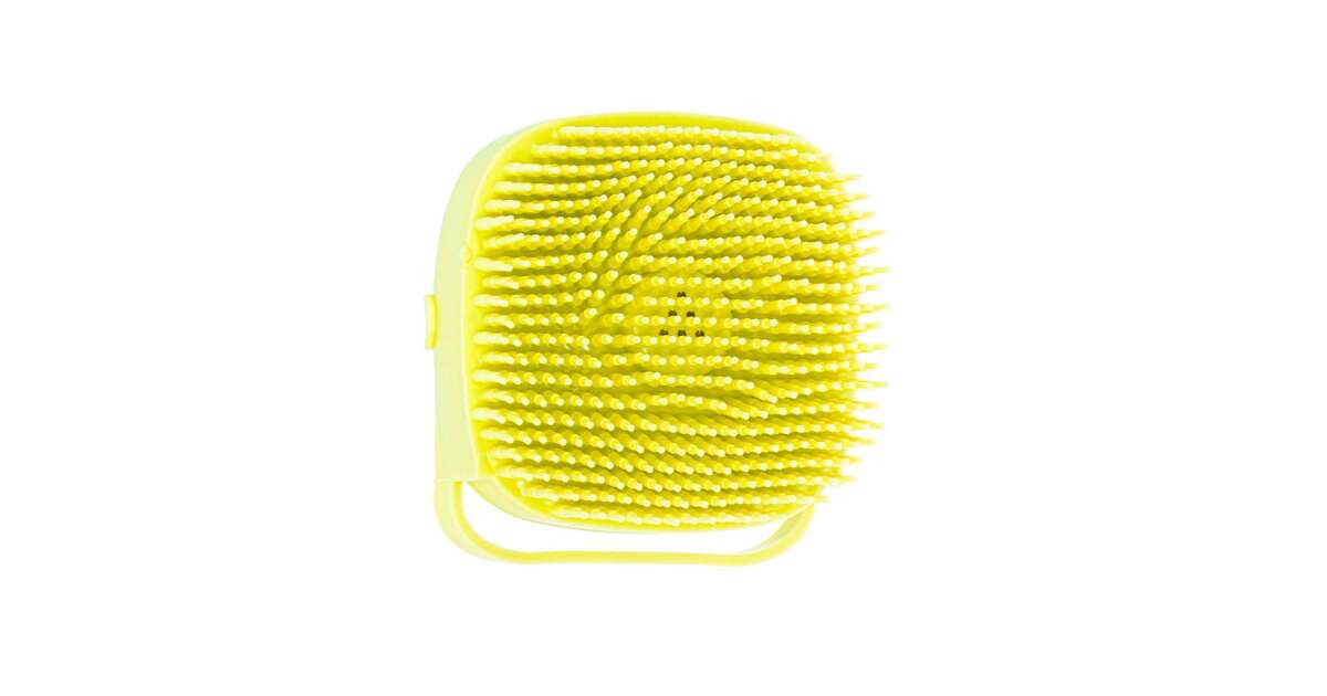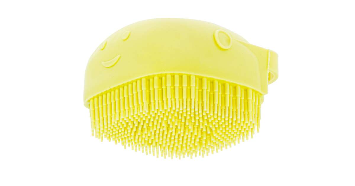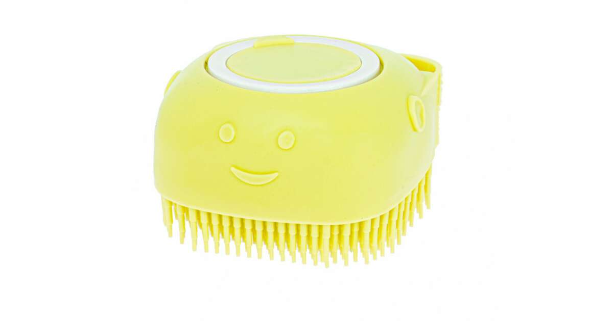 Silikónová kefa 2v1 na umývanie a česanie psov a mačiek, so vstavanou nádobkou, žltá