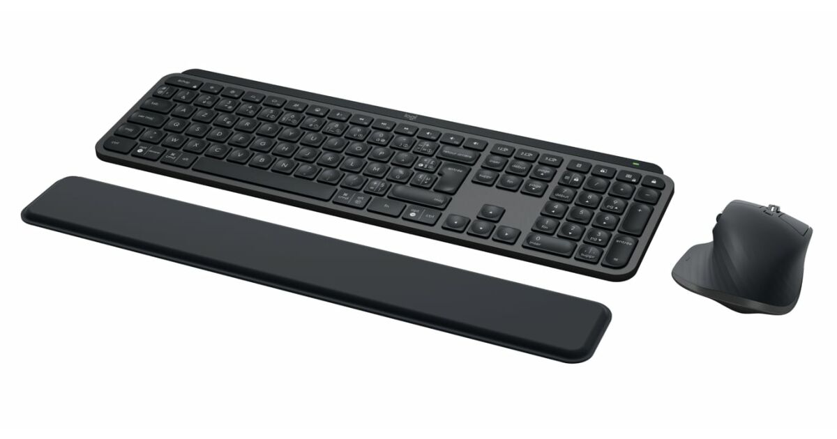 -Logitech MX Keys combo pre podnikanie Gen 2 klávesnica Myš zahrnutá RF bezdrôtová + Bluetooth AZERTY Francúzska Grafit popis