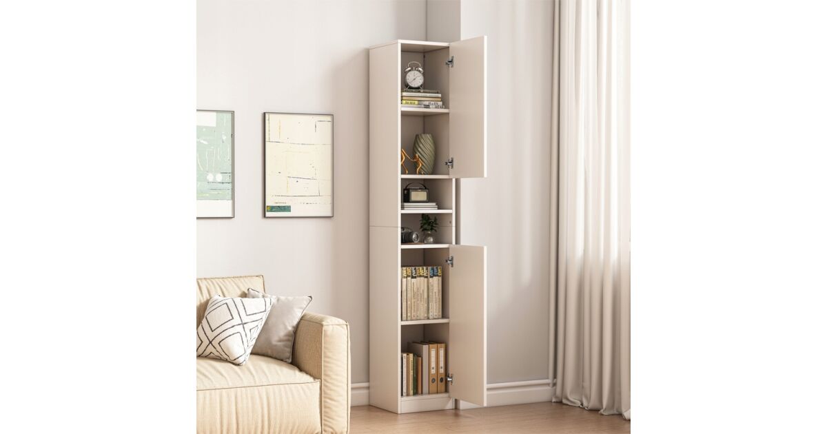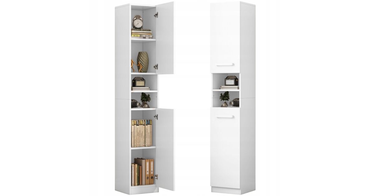 Biela moderná stojaca skriňa, vysoká knižnica, 2 dvere, 180 cm