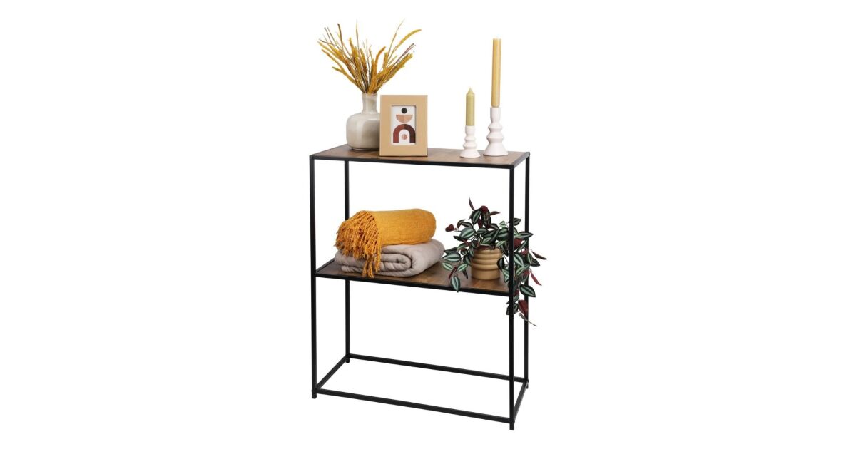 Doprajte svojmu domovu funkčnosť a industriálny štýl s týmto všestranným kusom nábytku. Tento regál je ideálny do predsiene, obývačky, kancelárie alebo spálne a ponúka veľkorysý priestor na ukladanie a vystavovanie dekoratívnych predmetov.