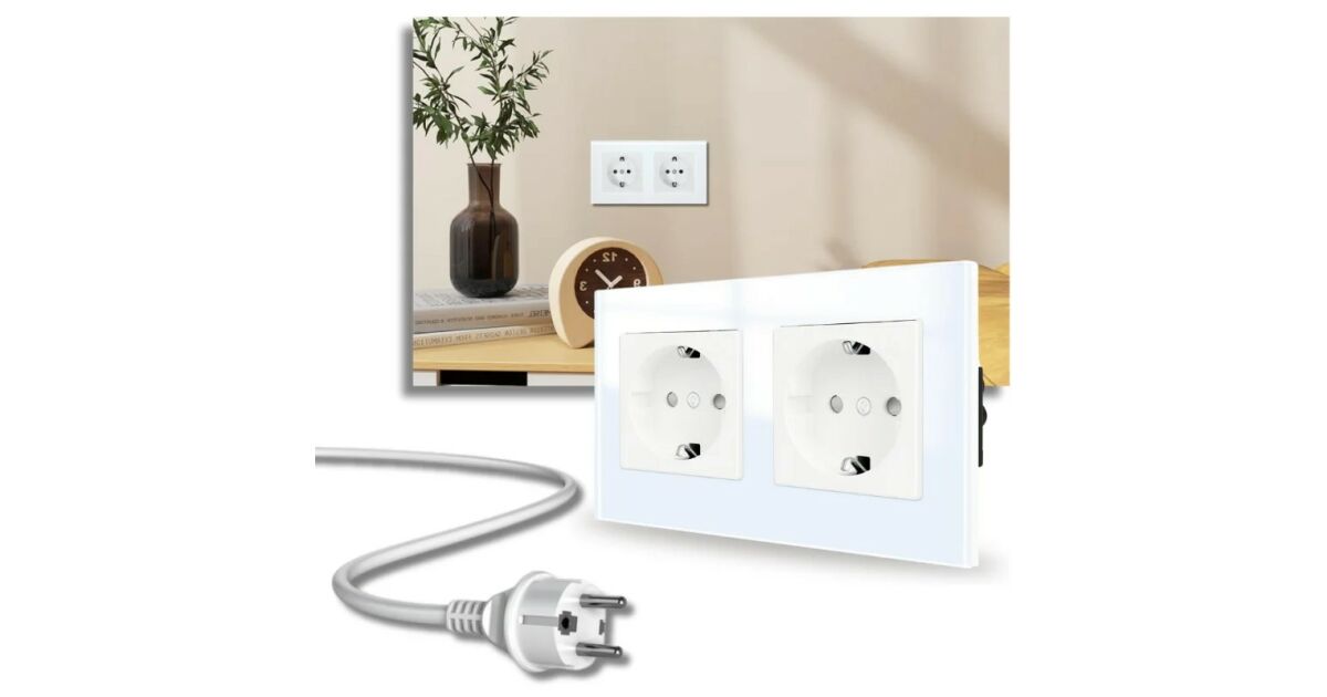iUni Dvojitá zásuvka s rámom z tvrdeného skla: Štýlové a bezpečné napájanie ✨