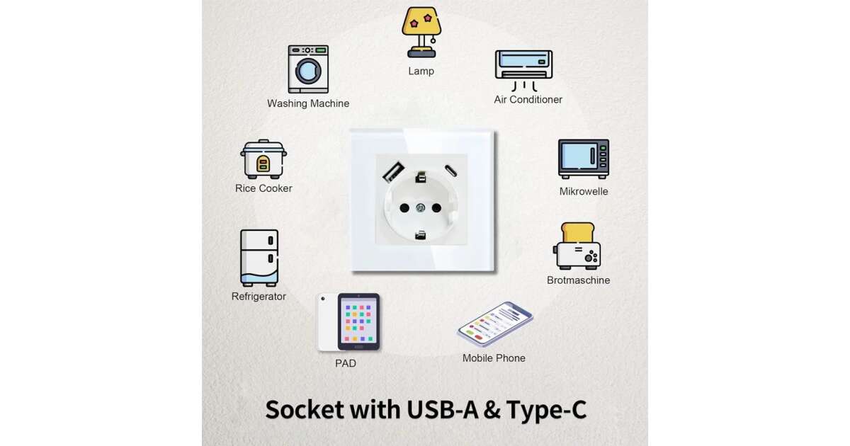 Osviežte svoj domov alebo kanceláriu touto modernou dvojitou zásuvkou so skleneným rámom, ktorá má aj porty USB-A a USB-C! Menovitý prúd 16A zaisťuje spoľahlivú prevádzku, zatiaľ čo elegantný dizajn sa perfektne hodí do každého interiéru. ✨