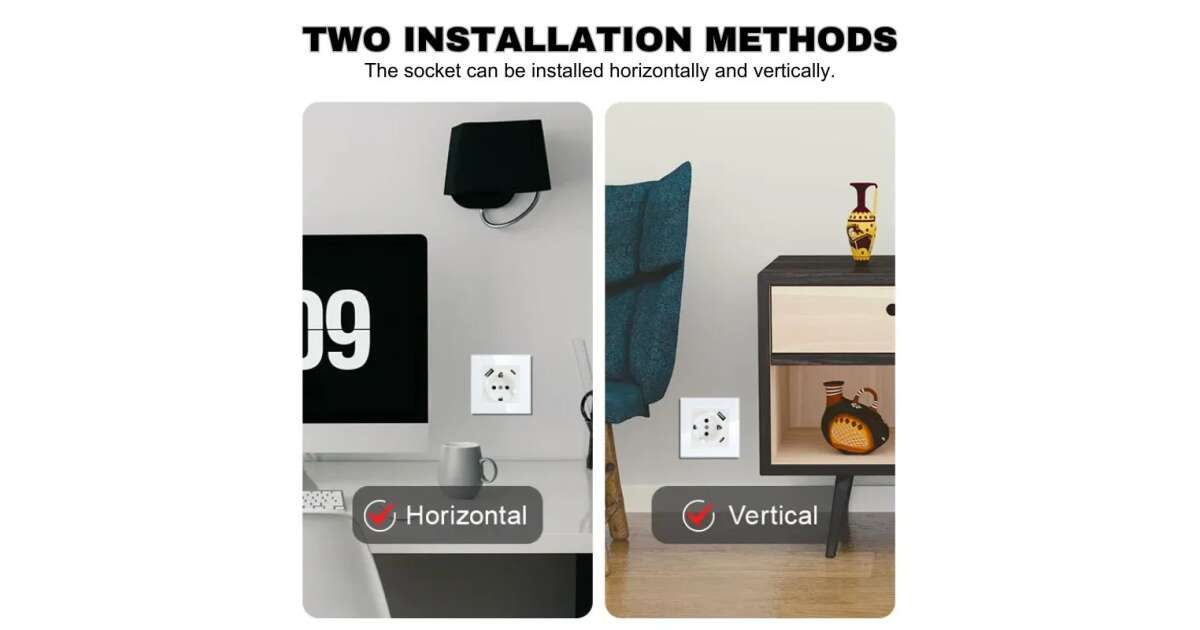 - Horizontálna alebo vertikálna montáž: Prispôsobte zásuvku štýlu miestnosti.