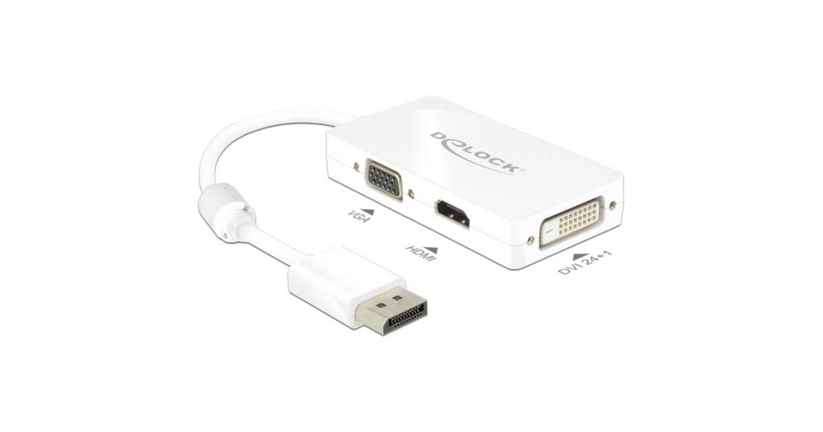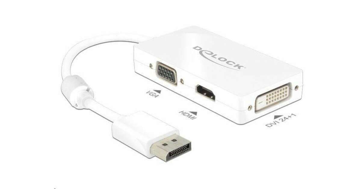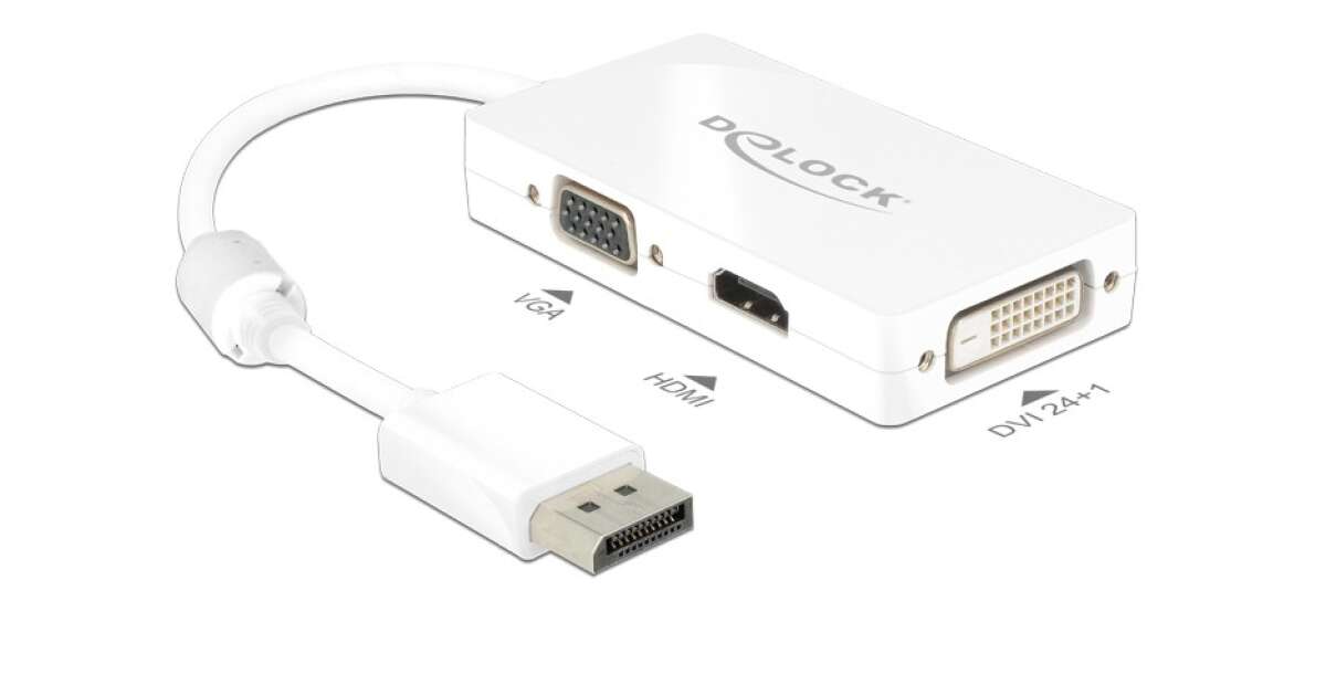 Delock 62655 Displayport 1.1 konektor > VGA / HDMI / DVI objímka pasívny biely adaptér
