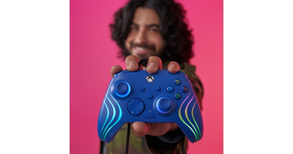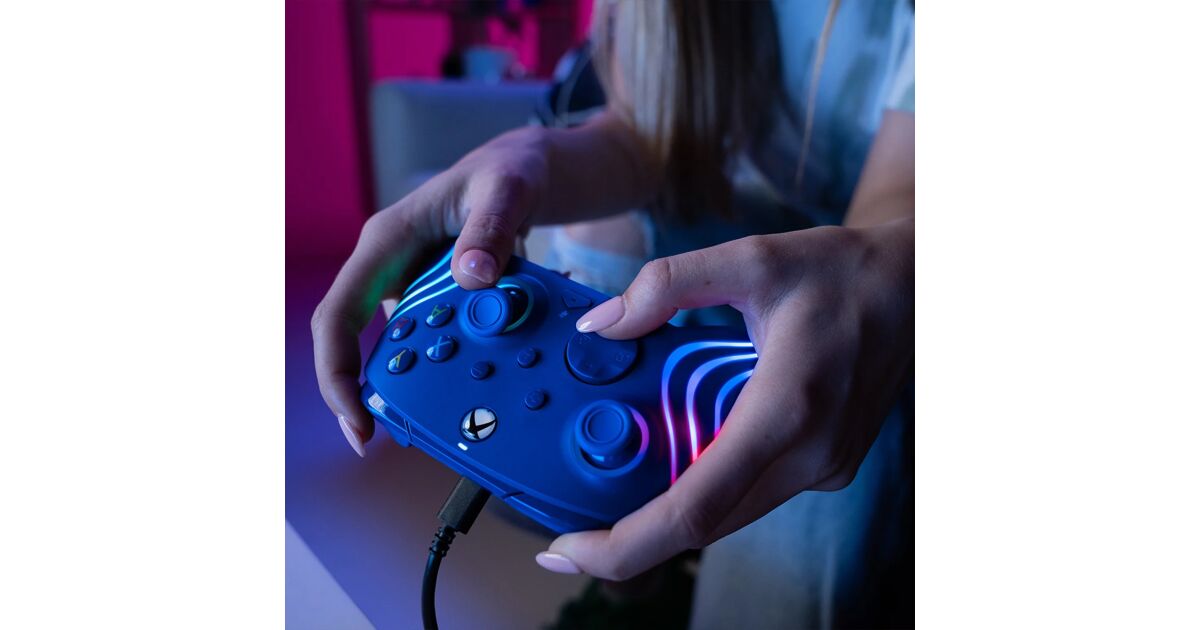 PDP Afterglow Wave, Xbox Series X|S, Xbox One, PC, RGB LED osvetlenie, modrá, káblový ovládač popis