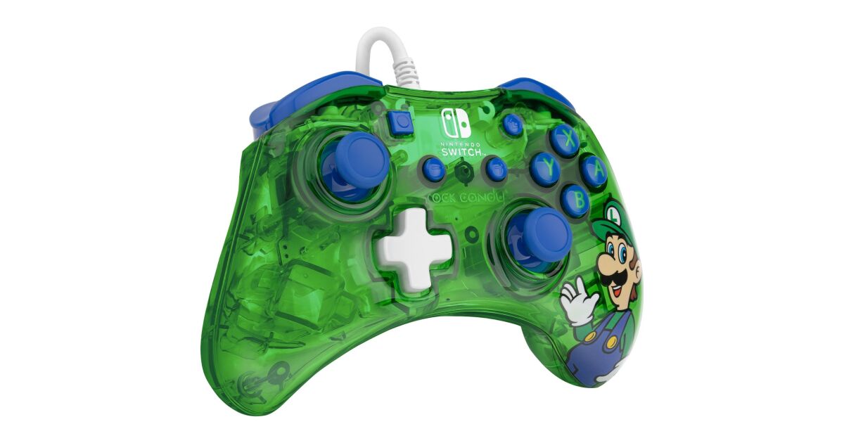 PDP Rock Candy: Luigi Lime Modrá, Zelená, Priesvitné USB Gamepad Analógový/digitálny Nintendo Switch, Nintendo Switch Lite, Nintendo Switch OLED popis