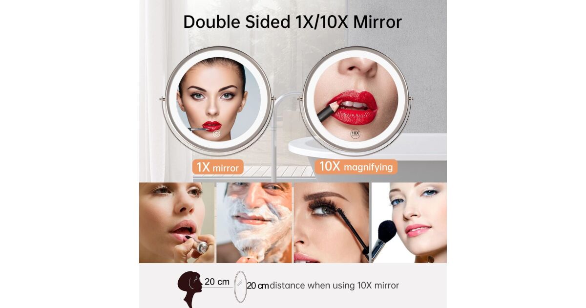 - Dvojstranné zrkadlo: 1x normálne a 10x zväčšovacie zrkadlo aj na tie najmenšie detaily.