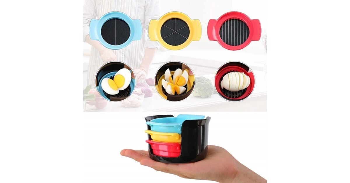 Táto všestranná súprava krájačov 3 v 1 uľahčuje krájanie vajec a ovocia. Obsahuje tri rôzne veľkosti a funkcie krájačov, takže ľahko zvládnete akúkoľvek úlohu.