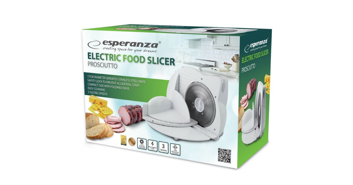 Esperanza EKM017W, Prosciutto, 150W, 0-15 mm, Čepeľ z nehrdzavejúcej ocele, biela, Univerzálny krájač