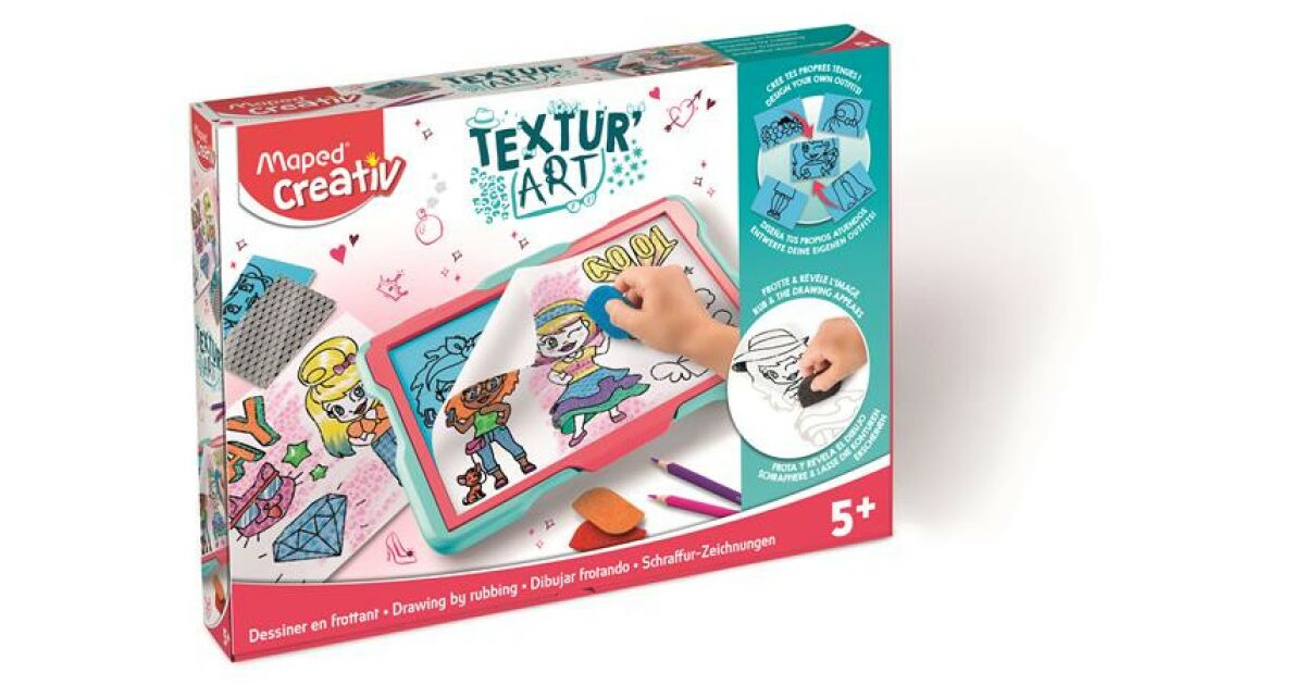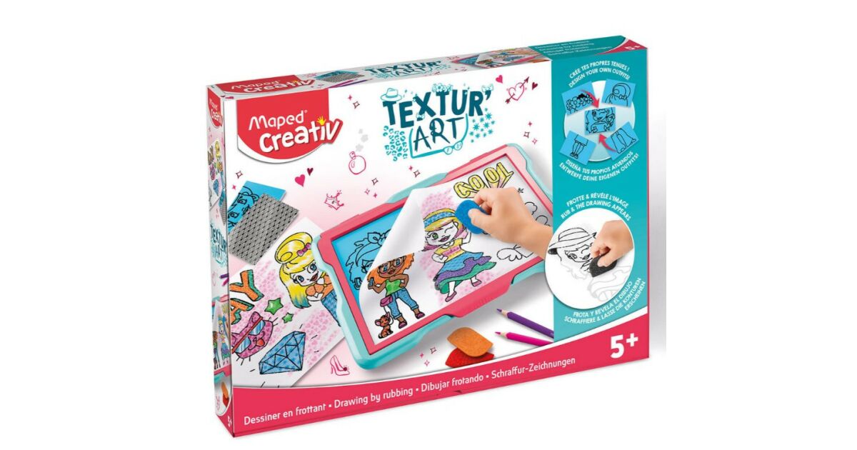 Táto sada je snom každého malého návrhára módy! S kresliacou tabuľou Maped Creativ Textur'Art ľahko vytvoríš jedinečné vzory a návrhy odevov. Jednoducho pretri šablóny a potom ich vyfarbi svojimi obľúbenými farbami! ✨