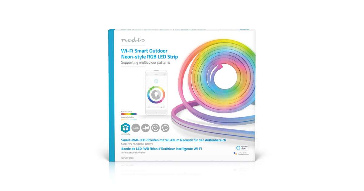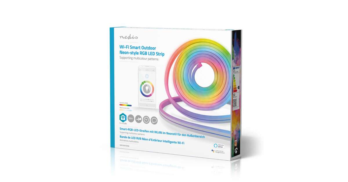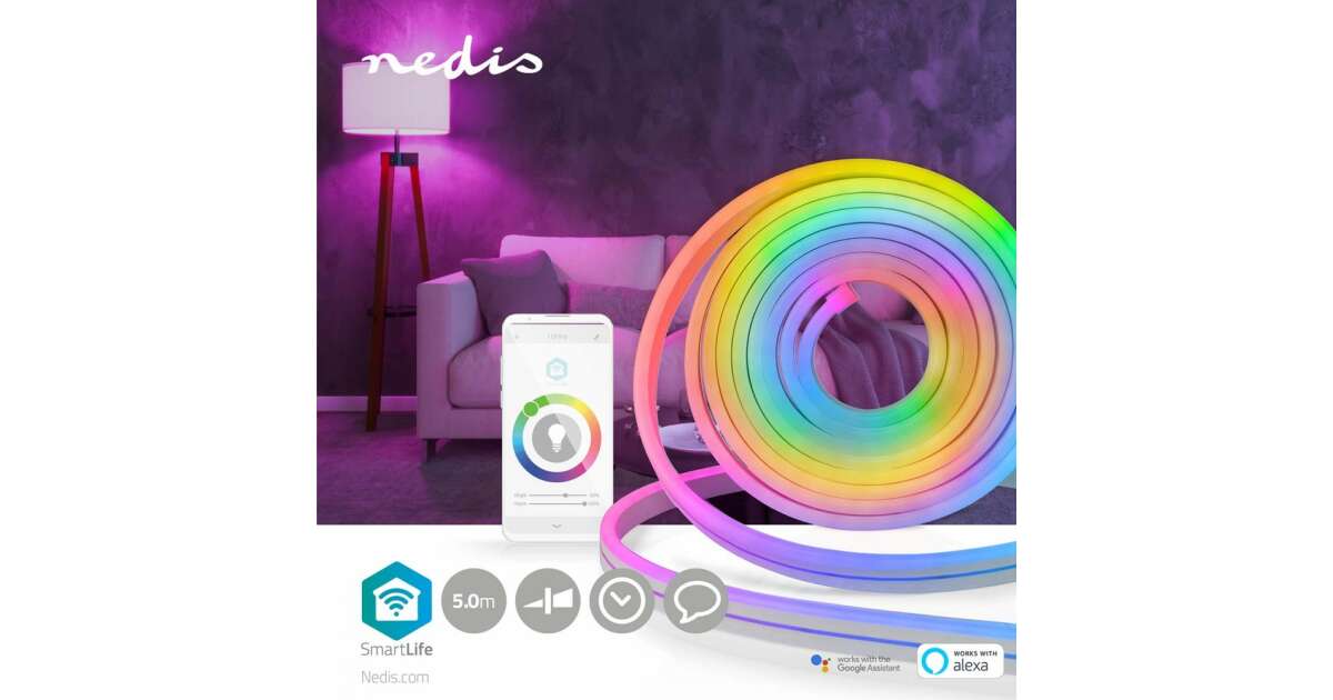 - Aplikácia Nedis SmartLife: Upravte farbu a jas, nastavte viacfarebné vzory, plány a automatizácie.