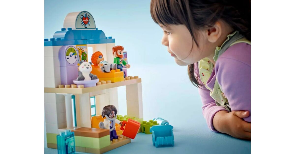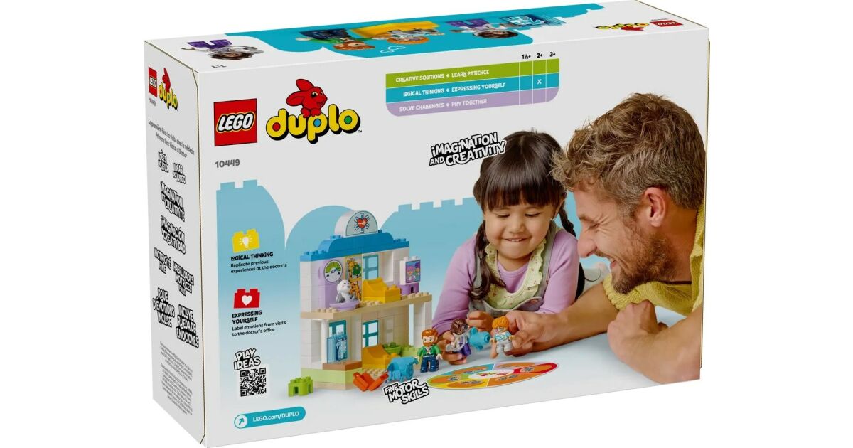 Malé deti vo veku 2 roky a viac objavujú svoje emócie s LEGO® DUPLO® Môj mesto Prvýkrát: Návšteva lekára (10449). Táto stavebnica pomáha deťom precvičovať jemnú motoriku, hrávať príbehy a cítiť empatiu k druhým, keď si predstavujú, že sú malými pacientmi na lekárskej prehliadke.