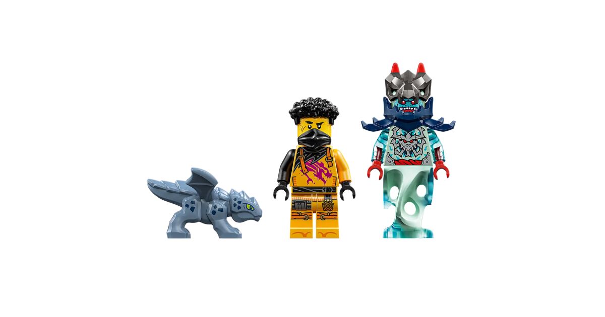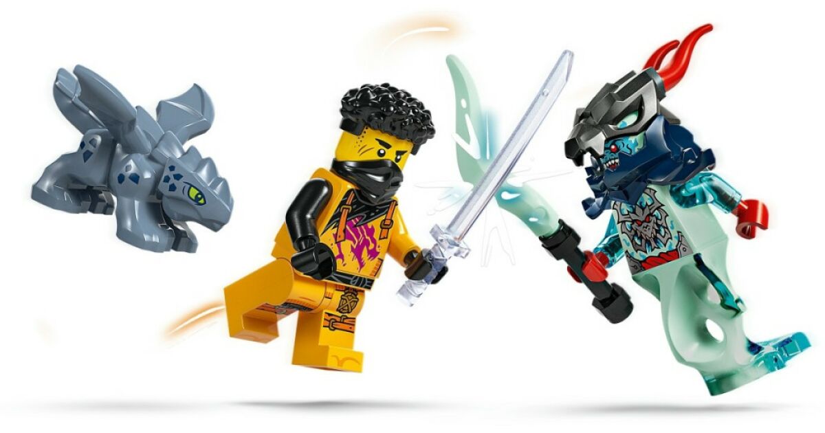 - 👤 2 minifigúrky: Arin s krištáľovou katanou a bojovník s dračou dušou s mečom, plus malý model Riyu.