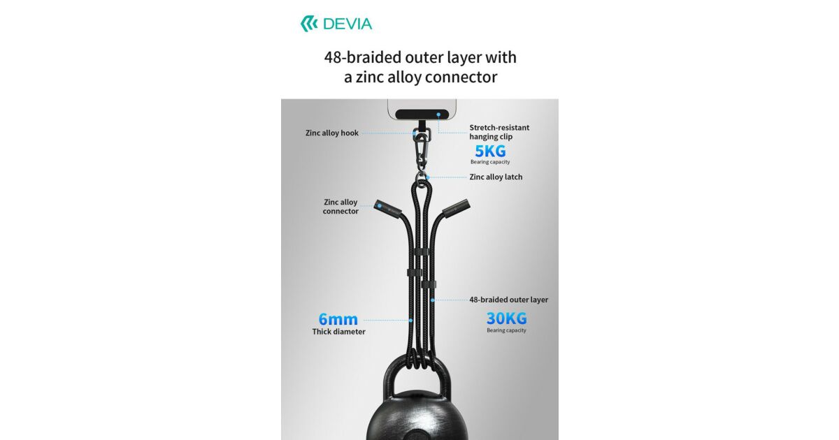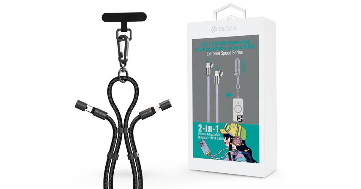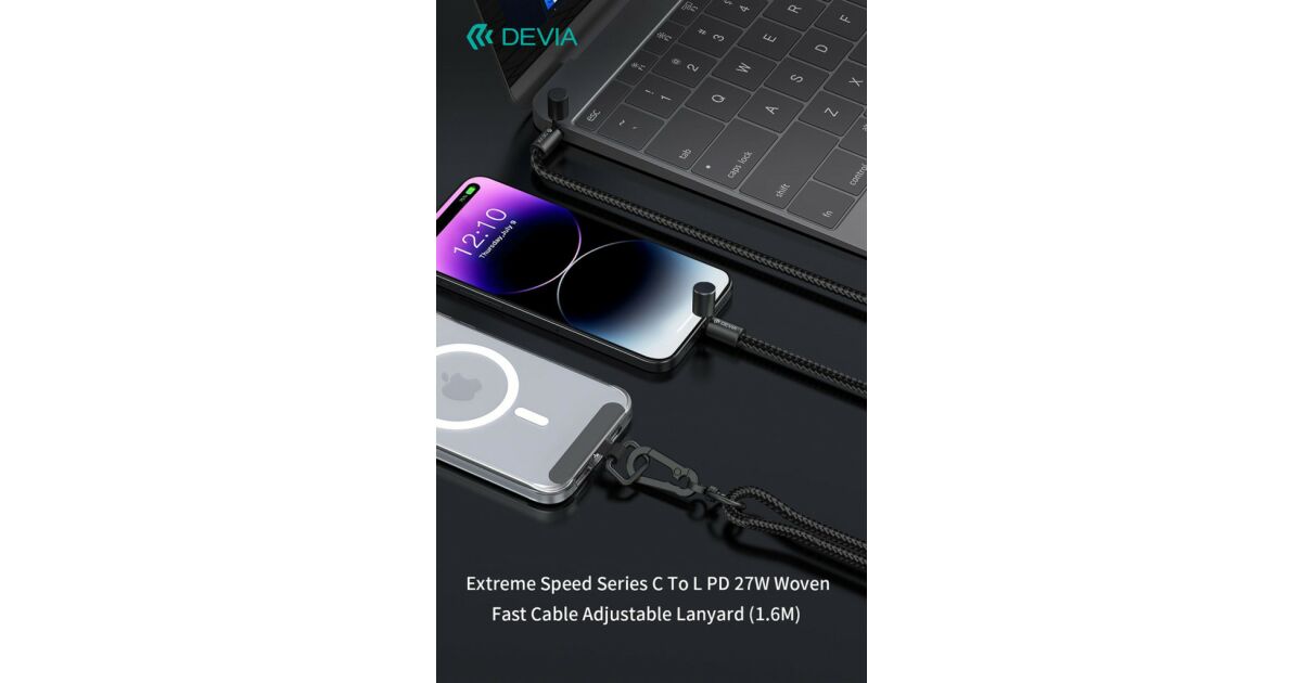 Pletený kábel USB-C/Lightning s remienkom na krk Devia Extreme Speed: Rýchle nabíjanie a prenos dát na cestách ⚡️