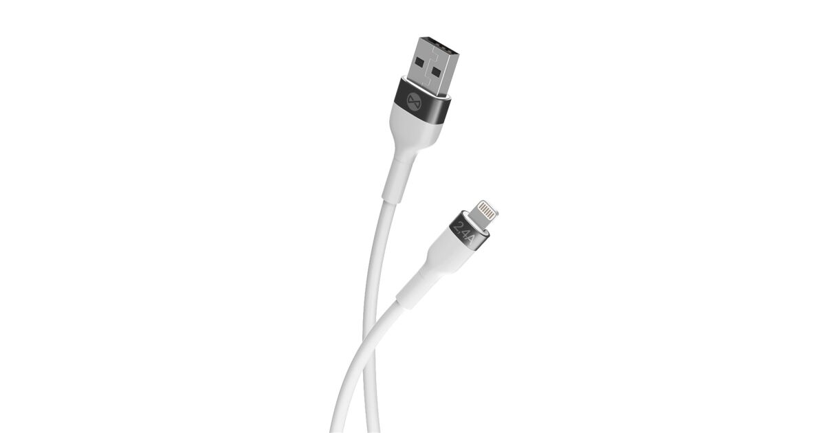 Forever Flexibilný nabíjací a dátový kábel, USB to Lightning, 1,0 m, 2,4 A, biely