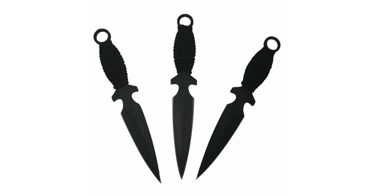 Sada 3 vrhacích nožov Ballistic Blades a troch vrhacích nožov, Black Fury, DEPOX®, nehrdzavejúca oceľ popis