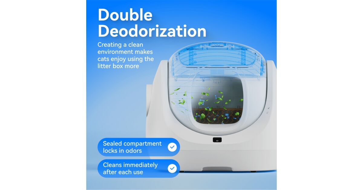 - Bezpečnostné funkcie: Infračervený senzor, ochrana motora a ochrana proti pricviknutiu labiek pre bezpečnosť vašej mačky. 🛡️