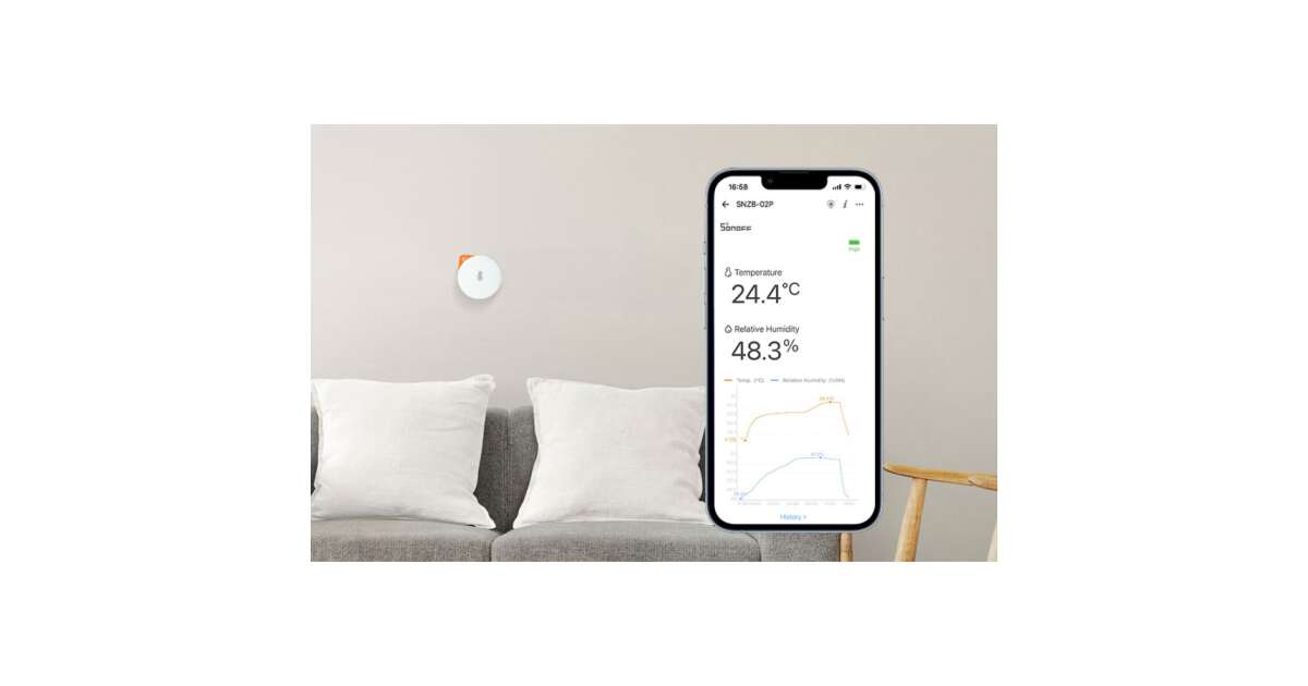 Pomocou aplikácie pre Sonoff SNZB-02P snímač jednoducho sledujete zmeny teploty a vlhkosti a nastavíte požadované prahové hodnoty. Vďaka funkcii inteligentných scén môžete automatizovať klímu vo vašom dome, napríklad zapnúť klimatizáciu, ak je teplota príliš vysoká.