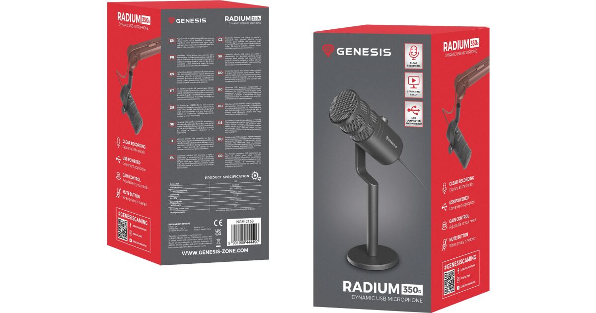 Dynamický USB mikrofón Genesis Radium 350D je ideálna voľba pre podcasterov, streamerov a hudobníkov, ktorí túžia po profesionálnej kvalite zvuku. Jednoducho ho pripoj k počítaču a nahrávanie môže začať!