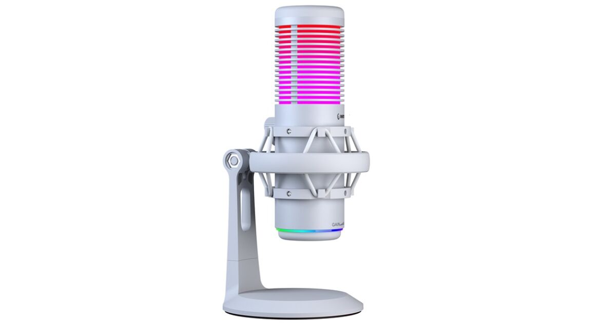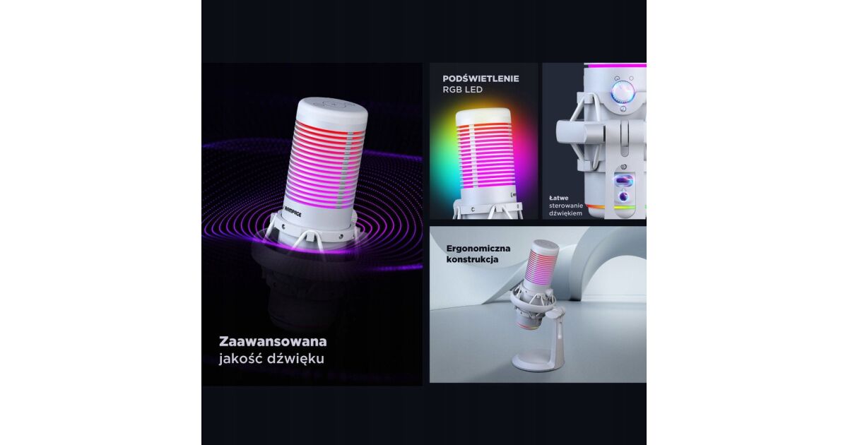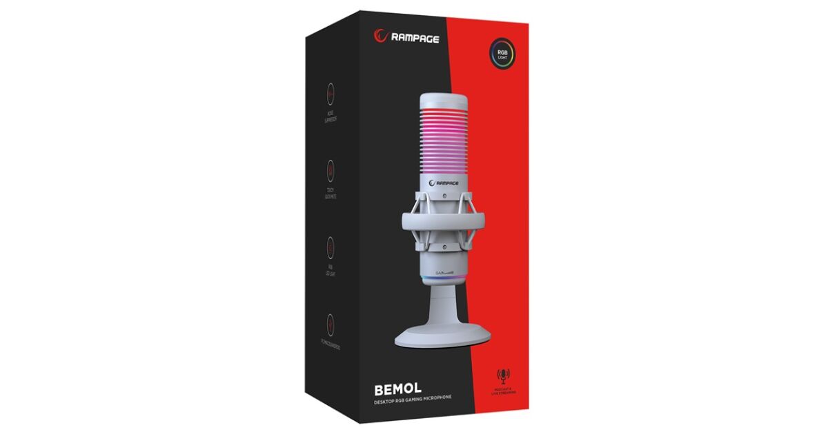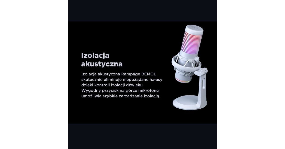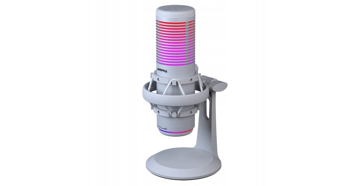 Mikrofón Rampage - BEMOL (USB, PC/MAC/Android, potlačenie šumu, stojan, biely, 2 m kábel, RGB)