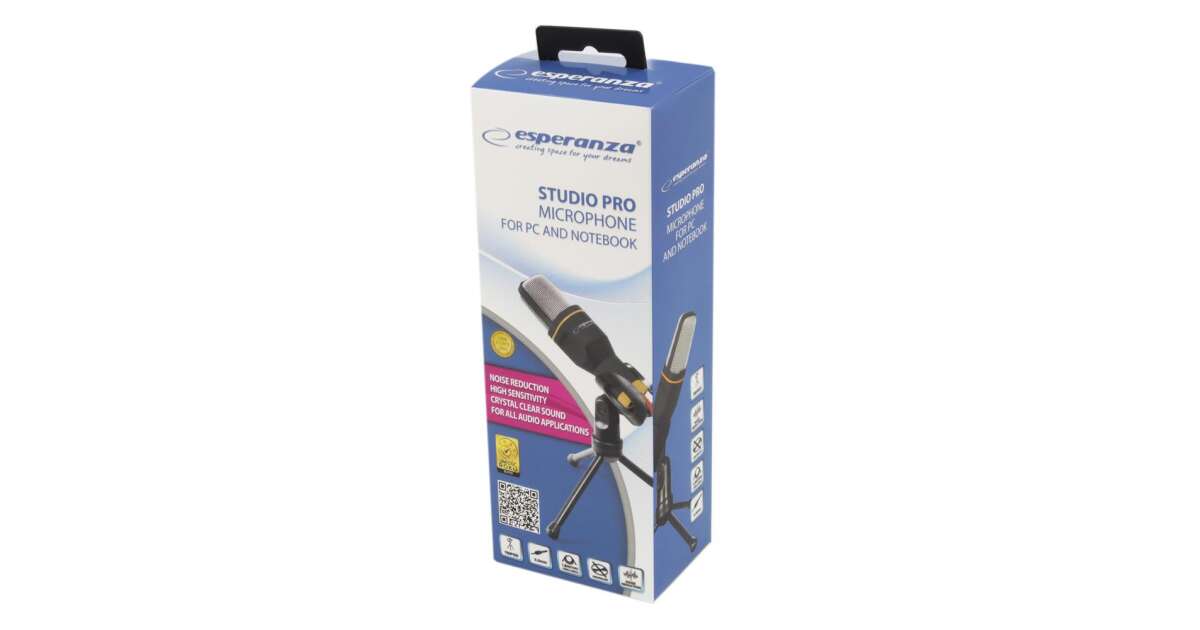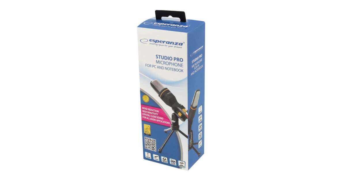 Tento kompaktný a ľahko použiteľný stolový mikrofón Esperanza Studio Pro je ideálny pre podcasty, online streamy alebo domáce nahrávky. Vďaka 1,8 metrovému káblu sa ľahko pripojí k počítaču alebo notebooku a vďaka zabudovanému stojanu zostane stabilne na mieste.