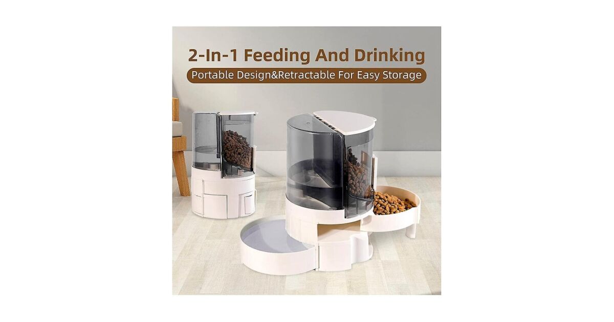 Automatický dávkovač vody a krmiva 2 v 1: s oddeleným dizajnom jednoducho pridajte suché krmivo a vodu pre domáce zvieratá. Vyrobené z vysoko kvalitného polypropylénového materiálu, bezpečné, bez zápachu, robustné a odolné. Automatické podávanie umožňuje jednoduchú demontáž a čistenie. Vyvýšené misky na jedlo a vodu pomáhajú udržiavať zdravie chrbtice vášho domáceho maznáčika. Tento produkt je priestorovo úsporné kŕmidlo a napájadlo 2 v 1 pre domáce zvieratá. Rozmery sú 25,4 cm x 16 cm a po roztiahnutí - 34,97 cm x 16 cm. Tip: Na čistenie nepoužívajte horúcu vodu, aby nedošlo k poškodeniu produktu.