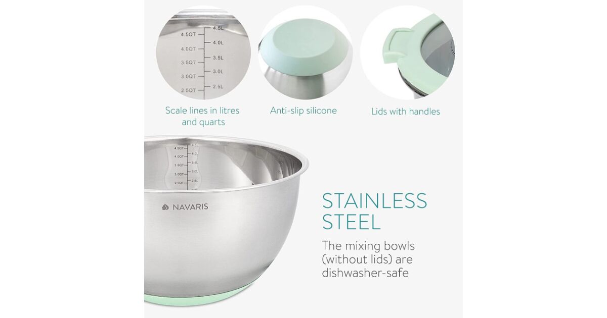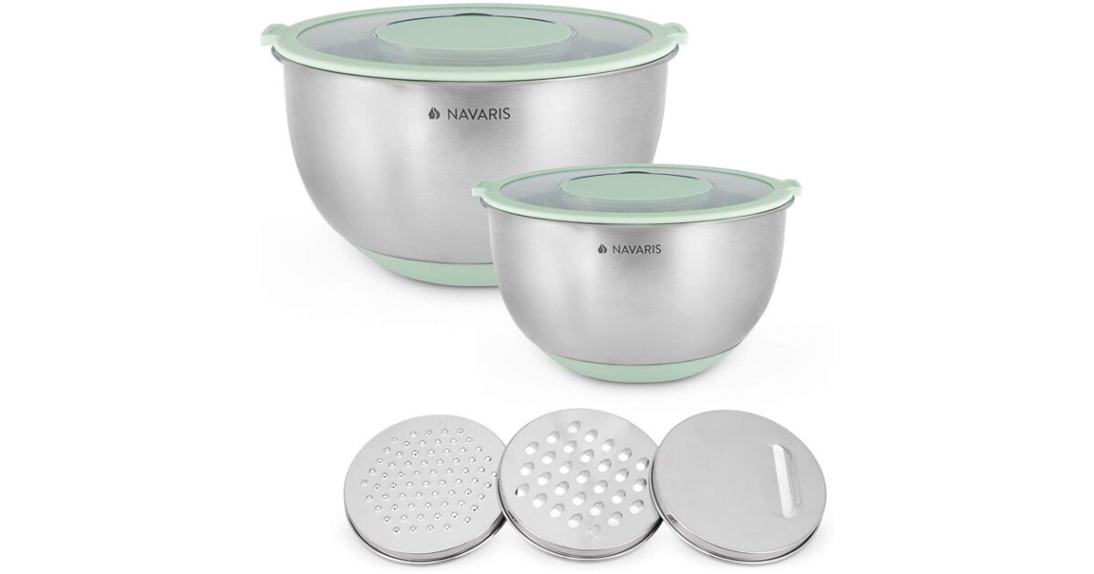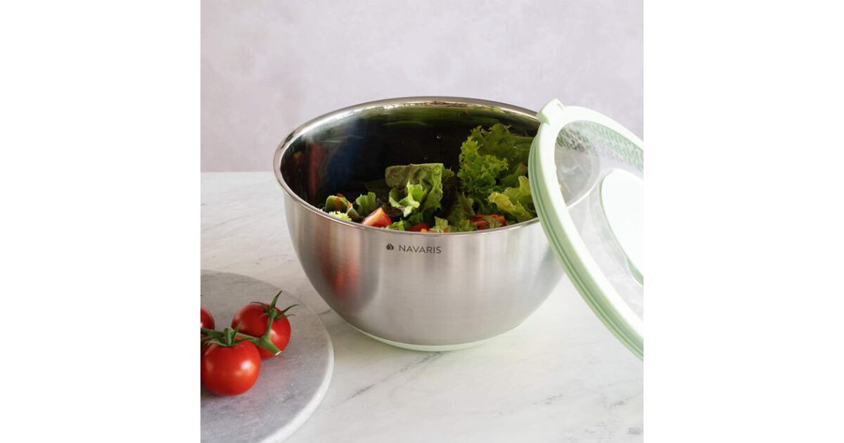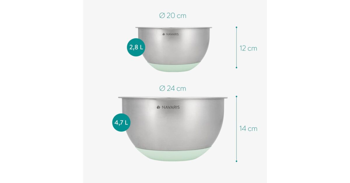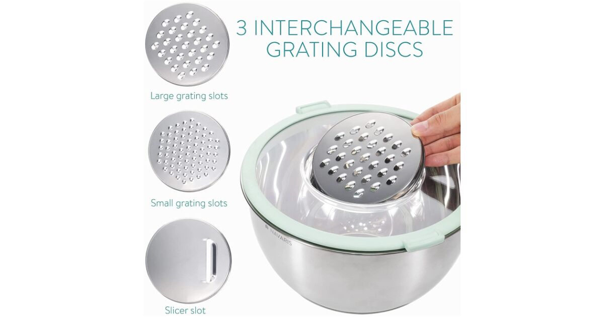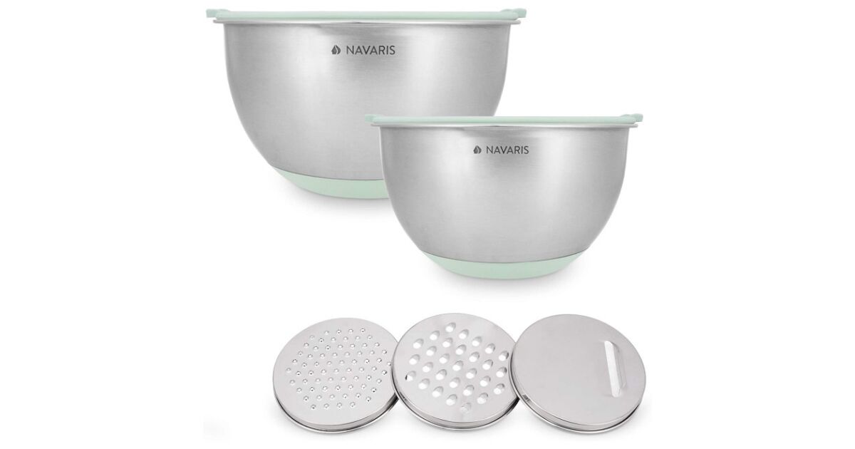 Táto praktická súprava od spoločnosti Navaris obsahuje dve nerezové misky s objemom 1,4 l a 4,7 l, ktoré sú ideálne na prípravu šalátov, dezertov alebo iných jedál. Misky sú vybavené vzduchotesnými viečkami, ktoré zaisťujú čerstvosť surovín. Okrem toho sa súprava dodáva s 3 vymeniteľnými strúhadlami, ktoré sú integrované priamo do viečok pre pohodlné a efektívne používanie.