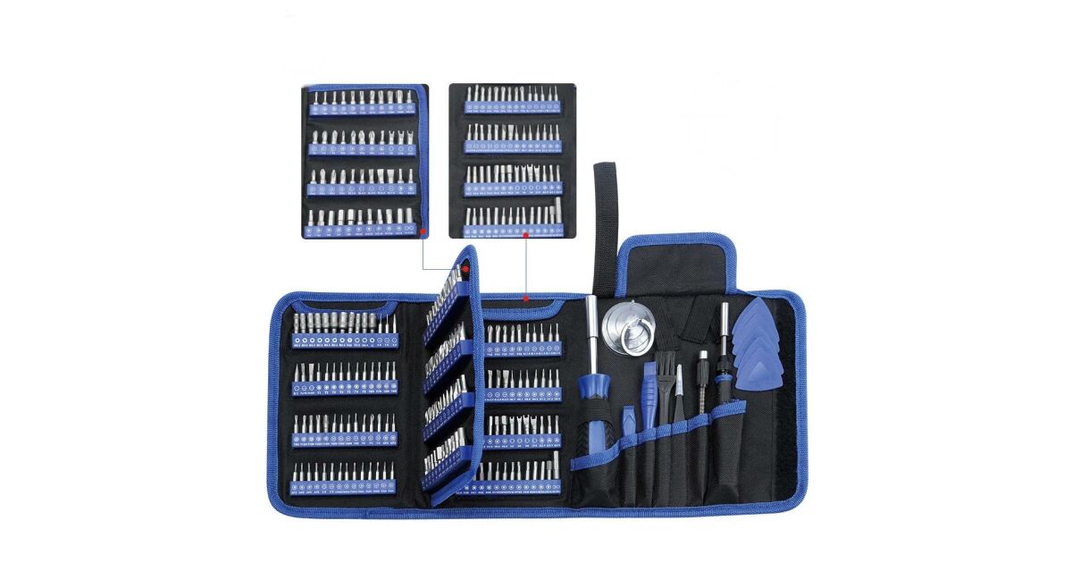 Súprava obsahuje 156 bitov a 14 príslušenstiev: 2 x rukoväte skrutkovača, 1 x flexibilný predlžovač, 1 x magnetický predlžovač, 1 x prachová kefa, 2 x plastový páčidlo, 1 x antistatický náramok, 1 x prísavka na vyberanie displeja a 6 x nástrojov na rozoberanie.