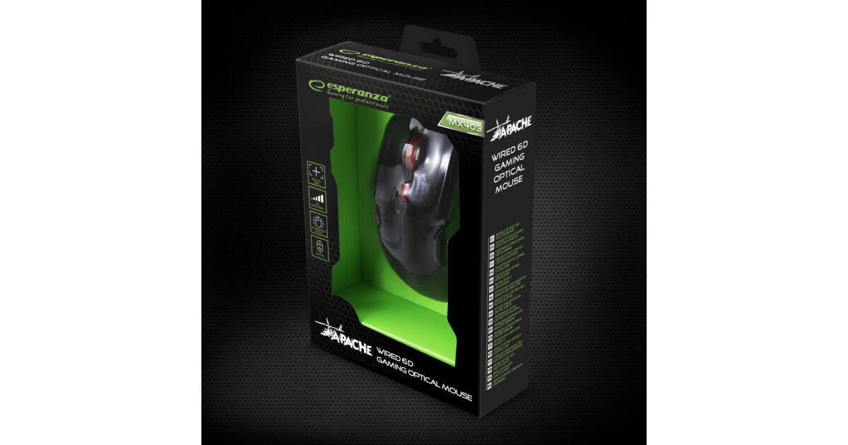 Herná optická myš Esperanza Apache 6D: Precízne ovládanie, štýlový vzhľad 🖱️