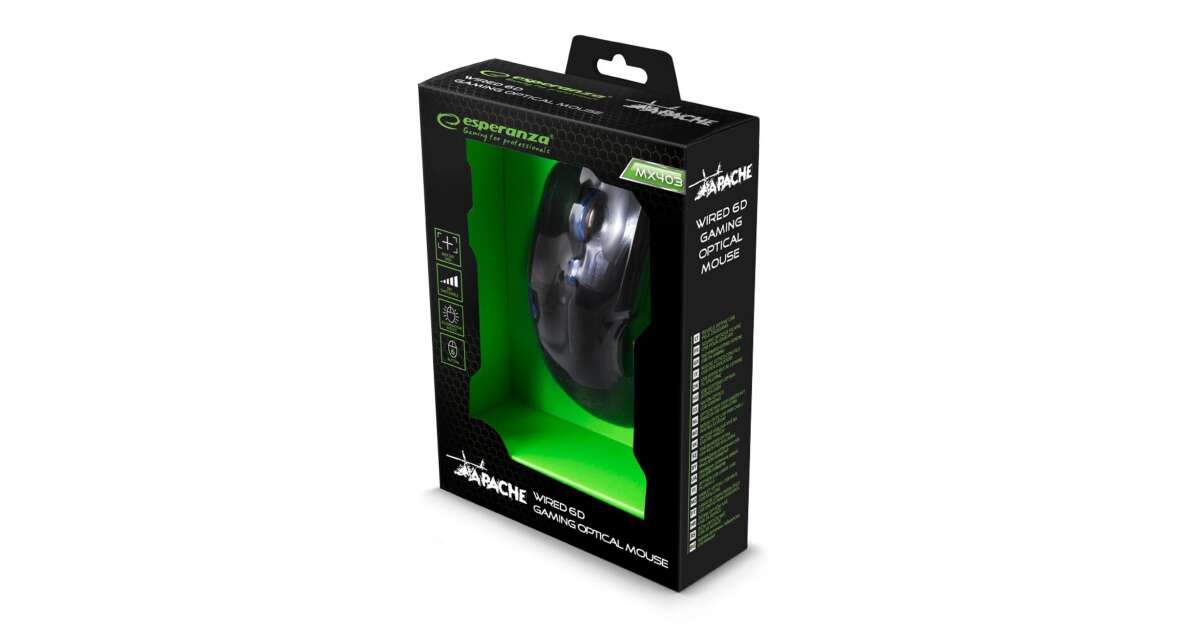 S hernou myšou Esperanza Apache MX403 si hry užijete na najvyššej úrovni! Presné ovládanie a pohodlné používanie sú zaručené!
