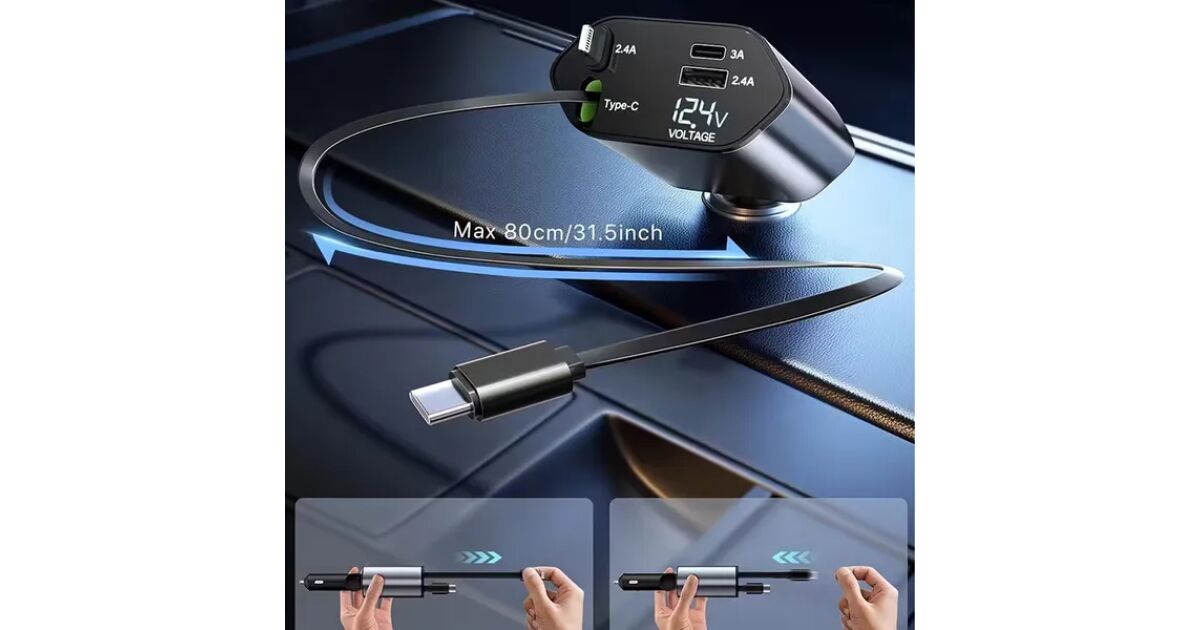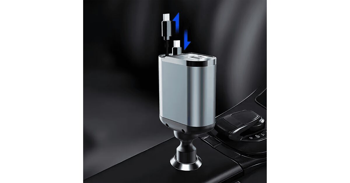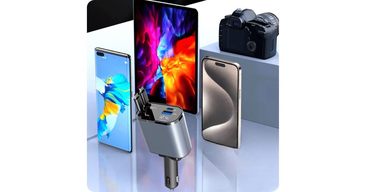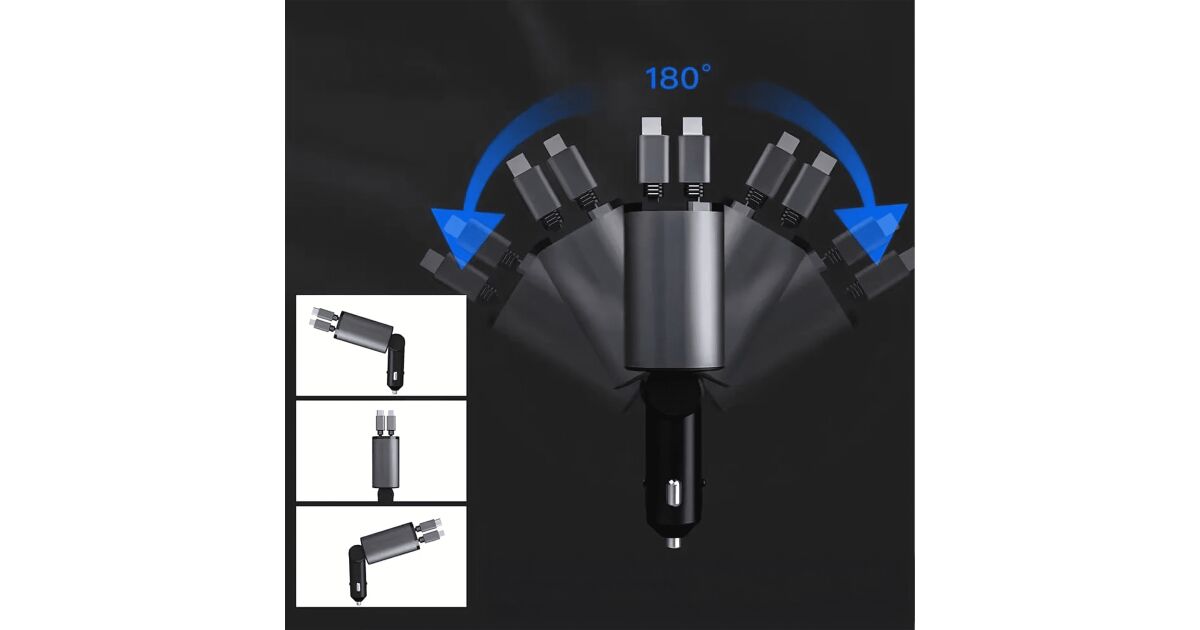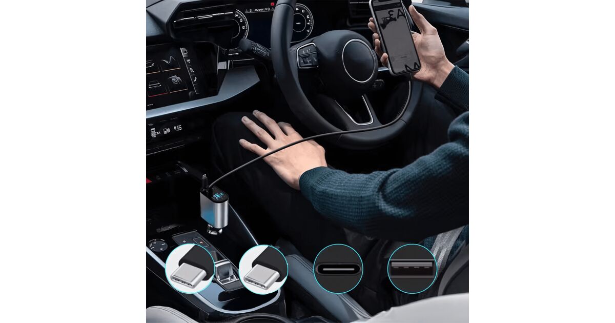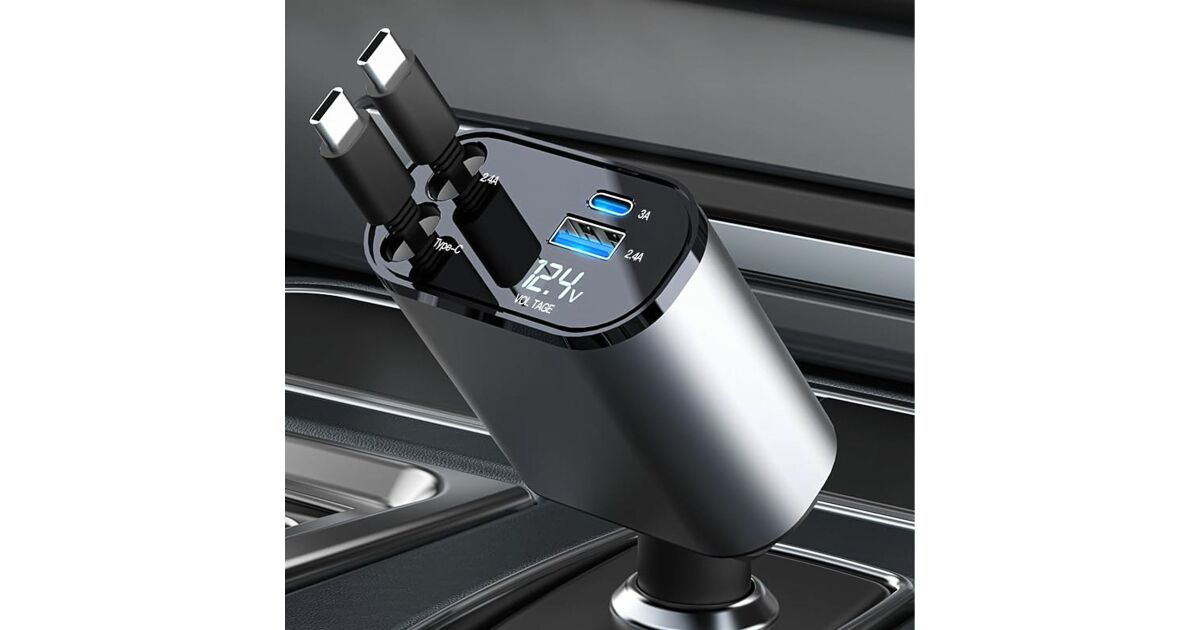 Táto multifunkčná nabíjačka do auta vám umožní nabíjať až štyri zariadenia naraz na cestách. A vďaka zaťahovaciemu káblu je neporiadok minulosťou!