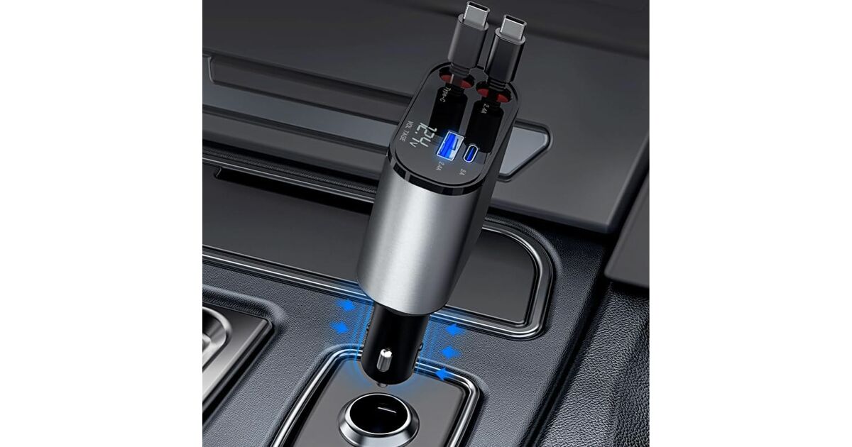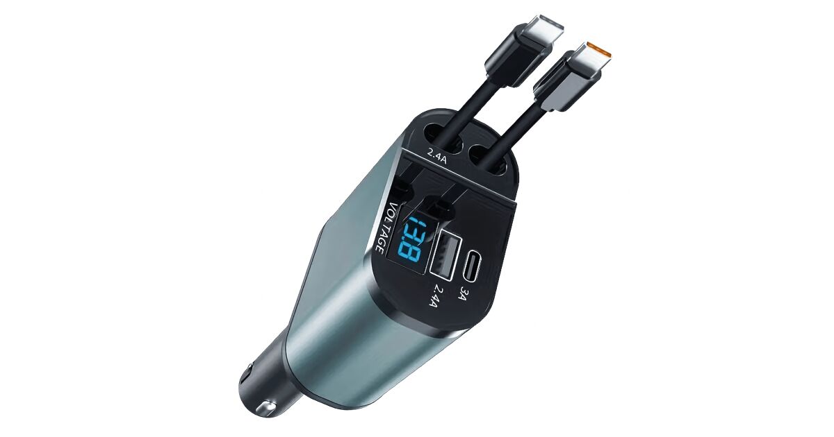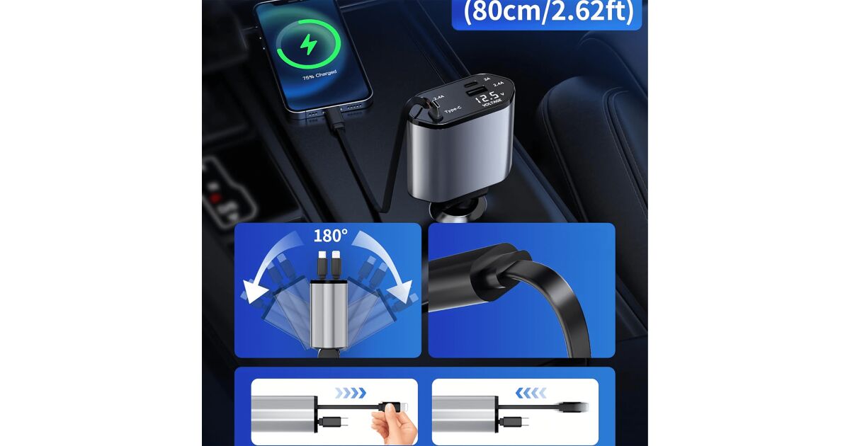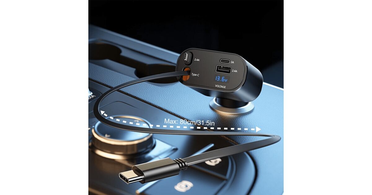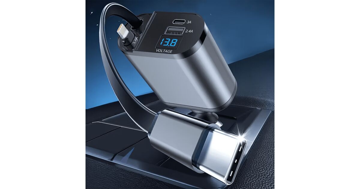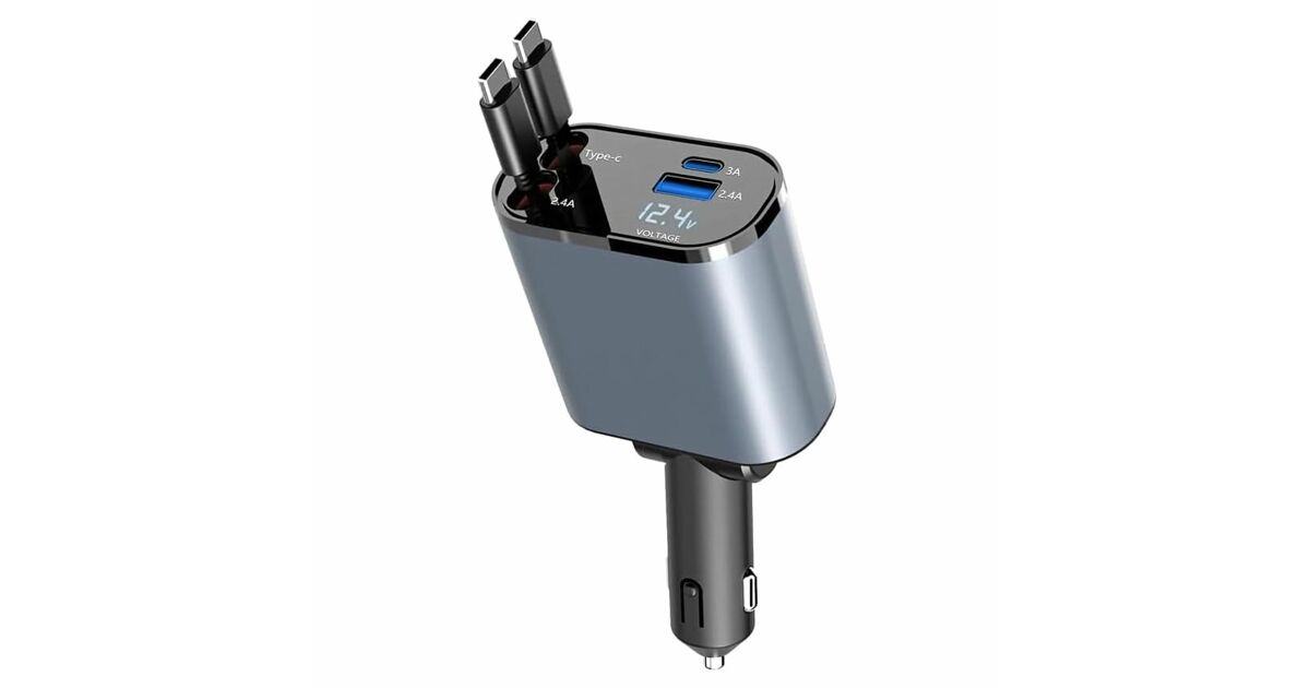 Táto multifunkčná nabíjačka do auta vám umožní nabíjať až štyri zariadenia naraz na cestách. A vďaka zaťahovaciemu káblu je neporiadok minulosťou!
