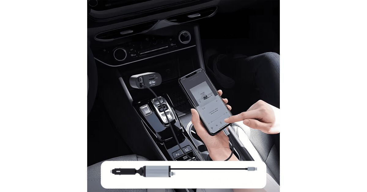 - Zaťahovací kábel (80 cm): Vďaka vstavanému zaťahovaciemu káblu USB-C už v aute nebudete mať žiadne zamotané káble. 🔄