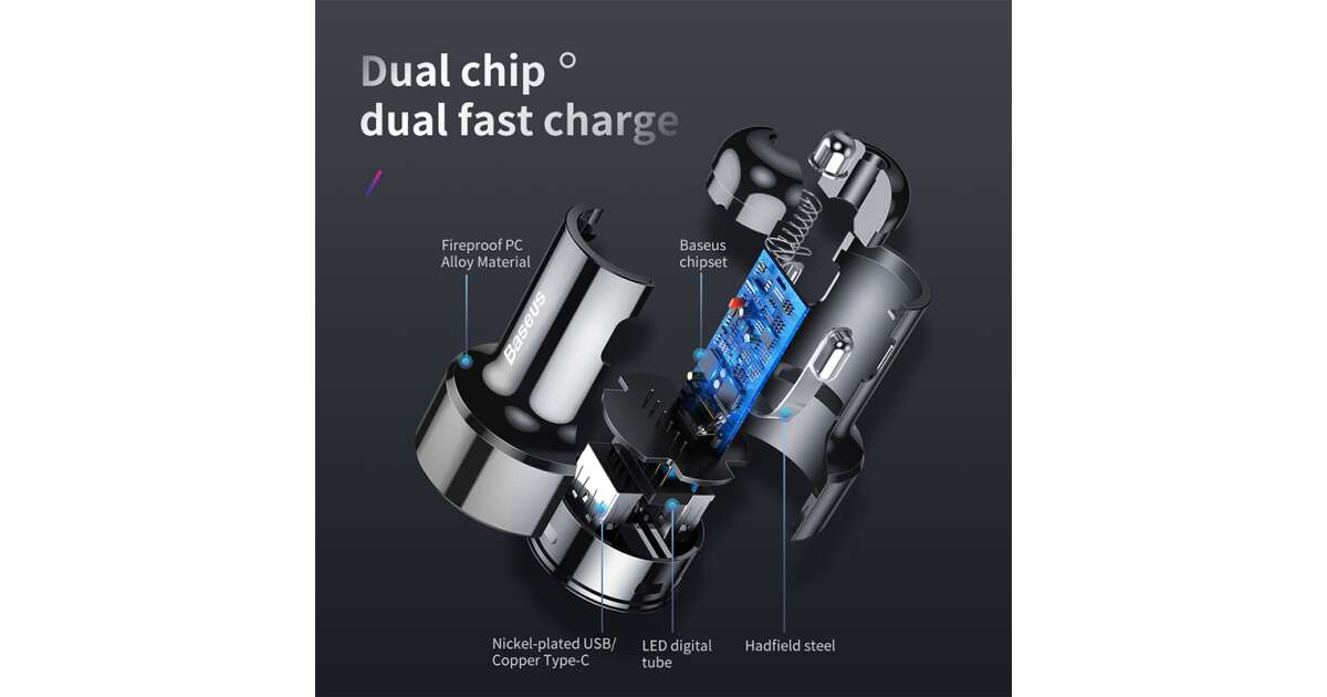 Táto kompaktná Baseus Magic Series PPS auto nabíjačka je perfektná na rýchle nabíjanie smartfónov, tabletov a laptopov. Má dva porty: USB-C PD a USB QC3.0, takže môžete nabíjať dva zariadenia súčasne.