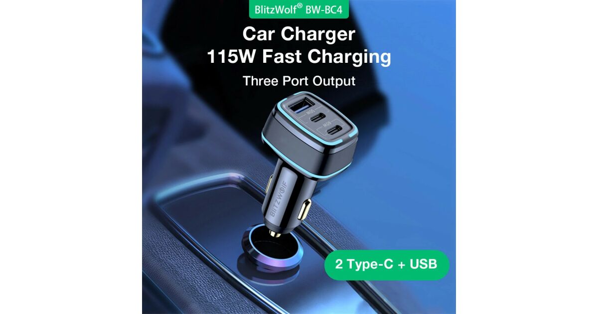 Predstavte si: môžete nabíjať viacero zariadení naraz v aute bez toho, aby ste museli robiť kompromisy v rýchlosti. S nabíjačkou do auta BlitzWolf® BW-BC4 115W je to realita! Táto kompaktná, no výkonná nabíjačka má 2 porty Type-C a 1 port USB-A, takže môžete nabíjať až tri zariadenia súčasne.