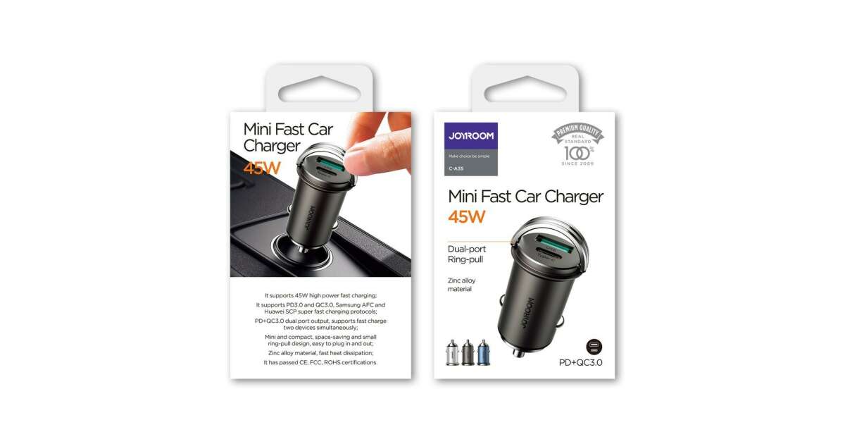 Táto kompaktná mini nabíjačka do auta Joyroom má dva porty USB (USB-A a USB-C), ktoré umožňujú nabíjanie dvoch zariadení súčasne. Vďaka výkonu 45 W poskytuje až 10-krát rýchlejšie nabíjanie ako tradičné porty USB 2.0. Ideálne pre telefóny, tablety, GPS a iné zariadenia.
