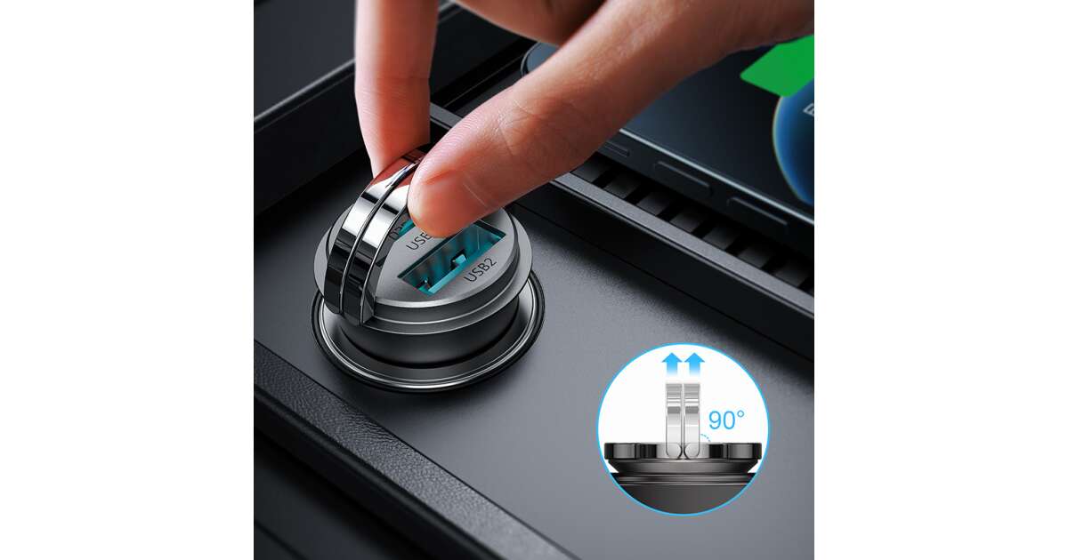 Konštruktéri tejto malej nabíjačky dbali na maximálne pohodlné používanie aj na hrboľatých cestách. Rukoväť s ťahacím krúžkom umožňuje držať nabíjačku dvoma prstami, takže ju môžete pohodlne uvoľniť počas jazdy. Vďaka robustnej konštrukcii a dobre zvolenému tvaru zostáva nabíjačka pevne v zásuvke zapaľovača vo všetkých polohách. Vďaka slabému podsvieteniu môžete porty USB intuitívne ovládať aj v tme. Bezpečnosť pri nabíjaní