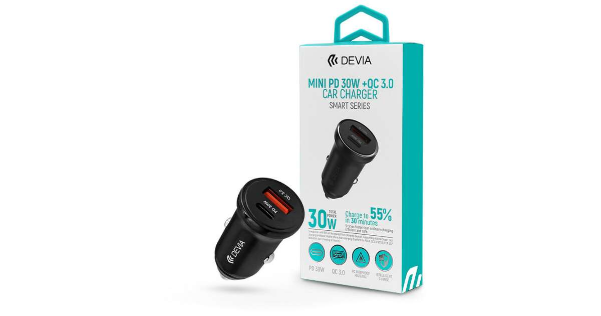 Devia Mini nabíjačka do auta PD 30W + QC 3.0: Rýchle a efektívne nabíjanie s USB-C a USB-A portami ⚡