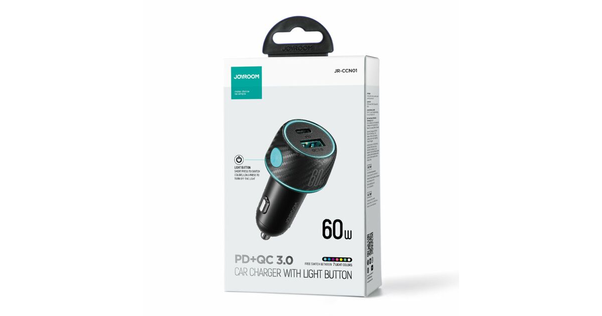 Táto 60W nabíjačka do auta Joyroom JR-CCN01 je perfektné riešenie, ak potrebujete rýchlo nabíjať dve zariadenia súčasne vo svojom aute. Má porty USB-C a USB-A, takže si ňou môžete nabíjať telefón, tablet, TWS slúchadlá alebo powerbanku.
